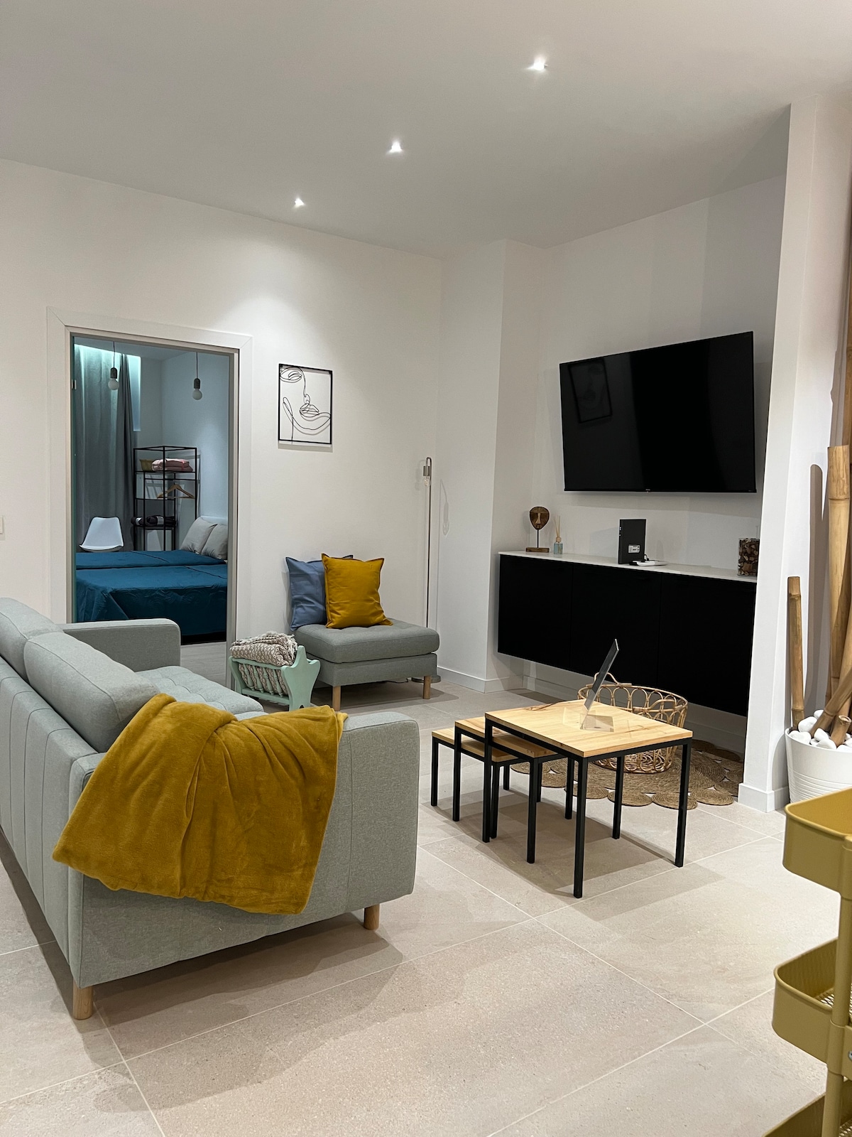 Ласкаво просимо до нашої повністю відремонтованої студії з вражаючим видом на океан, недалеко від красивих пляжів і місць для серфінгу. Оснащена швидким Wi-Fi, смарт-телевізором, повністю обладнаною кухнею, чудовим душем, пральною машиною та всіма зручностями. Гості мають вільний доступ до басейну. Автобусна станція та таксі розташовані прямо перед студією. Перед студією розташовані супермаркети та магазини. Всього в 5 хвилинах ходьби від Плайя-де-лас-Америкас, в 8 хвилинах ходьби від Плайя-де-Тройя. 15 км з аеропорту.