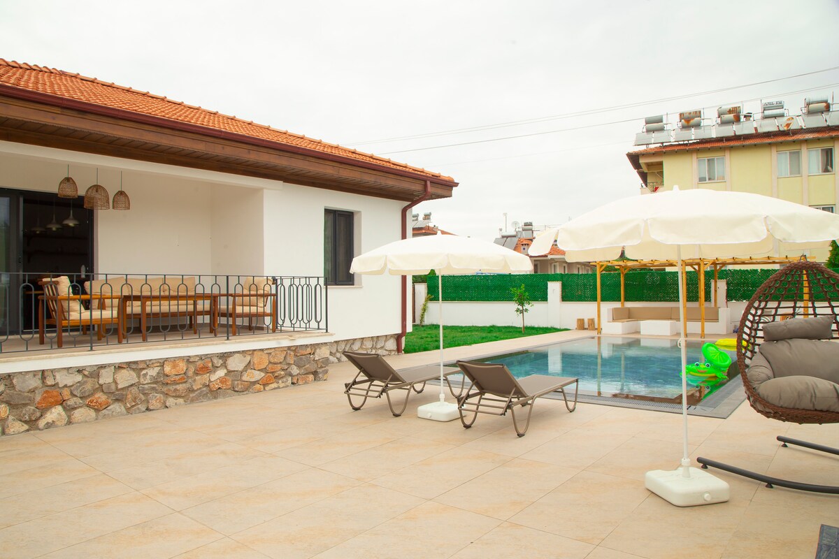 На нашій віллі 3 спальні з кондиціонером 🛌 Приватний басейн 🏊 Приватна зона для засмаги Приватне барбекю Повністю обладнана кухня Приватна паркінг *Навколо* Вакцина-Бей Пляж Ізтузу Пляж Сарігерме Затока Екінчик Термальні води Султаніє Затока Сарсала Озеро Койчегіз Koycegiz Yuvarlakçay *5* Розташоване в центрі **44** **45** **8** це місце **76** всюди **54** досить легко доступне.