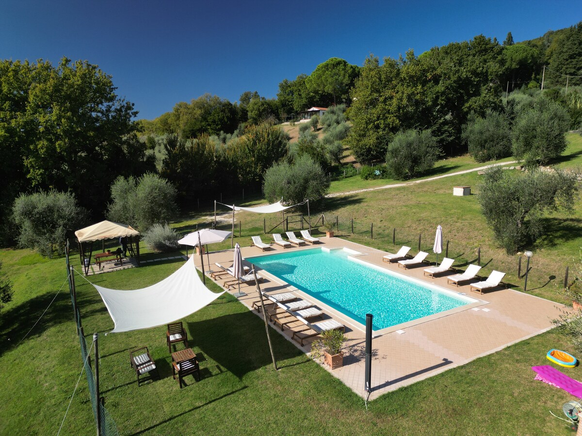 The Country house is located in the Umbrian countryside (1 hour from Rome), with panoramic view overlooking our vineyards. It has a 5000 square meter garden with English lawn, saltwater pool, olive trees, fruit trees and antique roses. The winery is 500 mt away, therefore, if you’d like, you will breathe the atmosphere of a place where wine is made. You are welcome to visit the cellar for wine tasting and to walks in the vineyards.