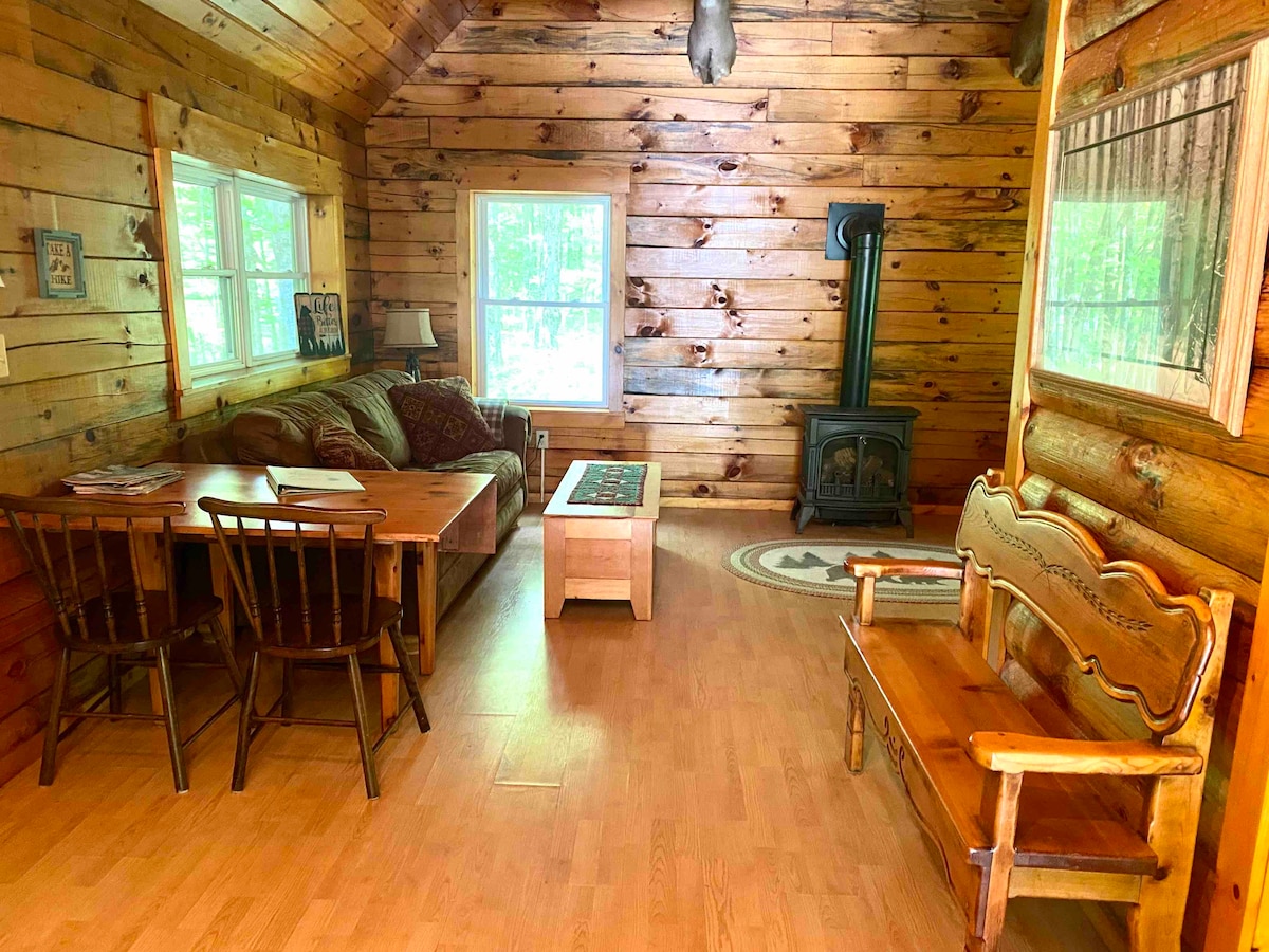 Private retreat on 45 acres, 5 miles from major highway. Salmon river 20 mins drive, snowmobile trails across the road. Private cozy cabin, queen size bed and futon. This is all one area with a private bathroom. Bathroom has full size shower, kitchen area a microwave, fridge, coffee maker and inside grill. Tea, coffee, water provided. BBQ on the front porch. Woodland trails, wildlife and privacy. No smoking or vaping in the cabin. Perfect for retreats or just being able to relax and breathe