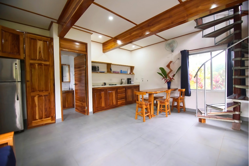 Це просторе бунгало в стилі будинку на дереві вміщує до 4 гостей серед пишної тропічної зелені. Вона має спальню з двоспальним ліжком, яскраву вітальню з повністю обладнаною кухнею, окрему ванну кімнату та диван-ліжко для двох. Сходи ведуть до галереї з місцем для двох додаткових матраців. З великого балкона відкривається приголомшливий вид на джунглі та птахів. Доступ до сусідньої зони басейну знаходиться всього за кілька кроків, щоб відпочити та насолодитися навколишнім середовищем.