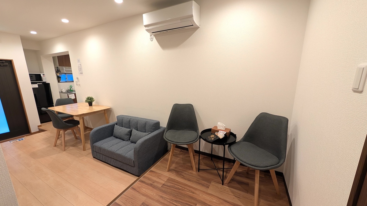 Надзвичайно чисте помешкання розташоване в центрі міста, але вночі тут тихо. Ресторани, кафе, супермаркети, 250 м до JR Абсолютно новий 4-поверховий будинок площею 175 кв. м включає 4 спальні, 3 туалети, 2 ванні кімнати (одна ванна), їдальню/вітальню, велику терасу на даху, балкон Безкоштовний Wi-Fi, Netflix, кондиціонер, пральна машина/сушильна машина, рушники, безкоштовне паркування Примітка. Курити всередині заборонено!Поруч є будівельні майданчики, які працюють з 8:00 до 17:00 у будні дні~🙃 Дуже тихо вночі~ Безпроблемне барбекю на даху😊