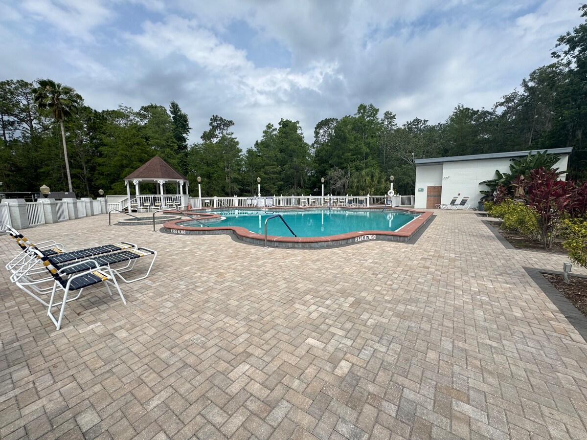 Справжній сімейний зруб Fort Wilderness із Walt Disney World, оновлений у класичному стилі Disney. Ласкаво просимо до нашого сімейного помешкання для відпочинку в Кіссіммі поруч із Celebration. 9 хв до арки WDW 18 хв до парку «Magic Kingdom» (без заторів на I-4) Поруч також розташовані «Sea World» та «Universal» Пляжі за 1 годину їзди Магазини, ресторани та автобуси до WDW - усі в пішій доступності Розміщує велику сім 'ю: Ванна з туалетом Повноцінна кухня Ліжко queen-size 2 двоповерхові ліжка Розкладний двоспальний диван-ліжко Розкладне дитяче ліжечко Кожна якість Діснея Не пов 'язаний з Disney