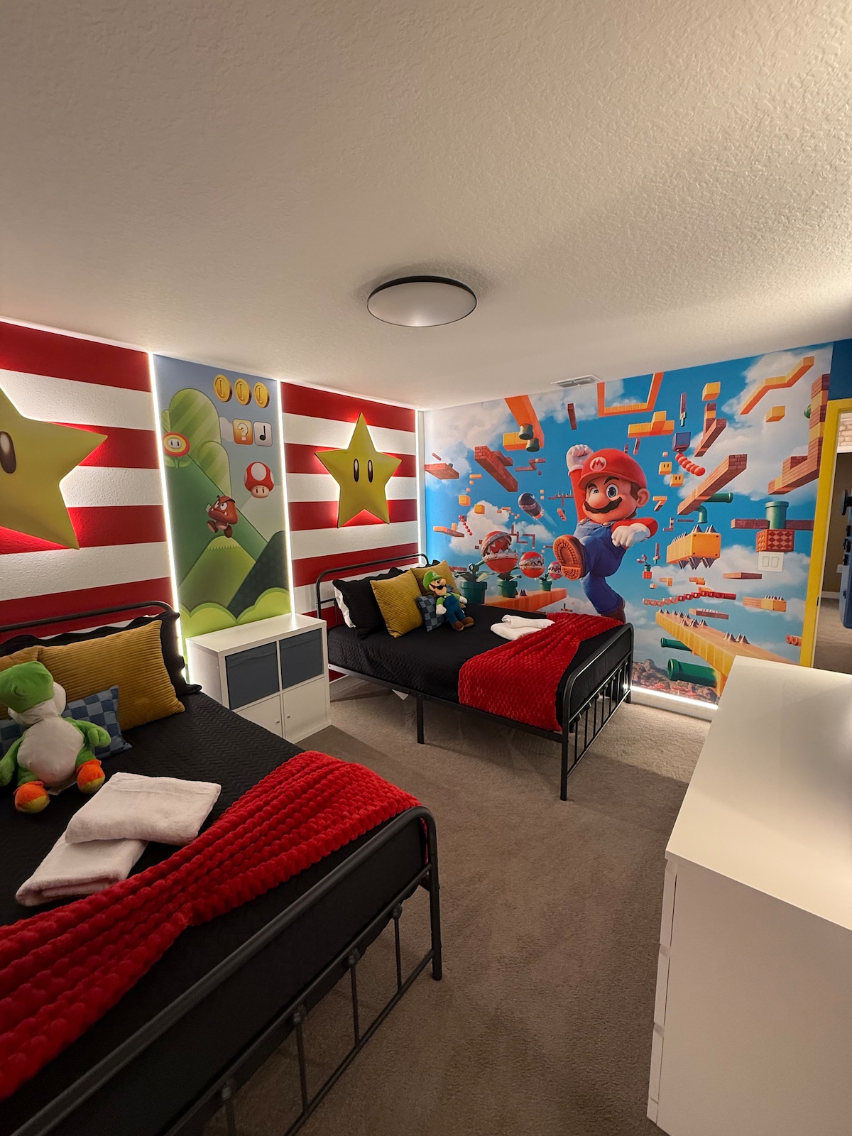 ✨ Відкрийте для себе власну пригоду від Disney! Ця вілла, де колись відпочивав чемпіон NBA, вміщує 23 осіб і поєднує розкіш із веселощами: • 🛏 Тематичні спальні (Frozen, Автомобілі, Гаррі Поттер, Зоряні війни тощо) • 🎬 Галактичний театр з 86-дюймовим екраном, об’ємним звуком, аркадами, Xbox і Nintendo • Басейн з💦 підігрівом і спа-центр із зручними сидіннями + спокійний вид на ліс • 🎢 Аквапарки курорту з повільною річкою, піратським кораблем, водними гірками та міні-гольфом • 📍 Найкраще розташування: лише 7 миль до Діснею та 19 миль до атракціонів MCO