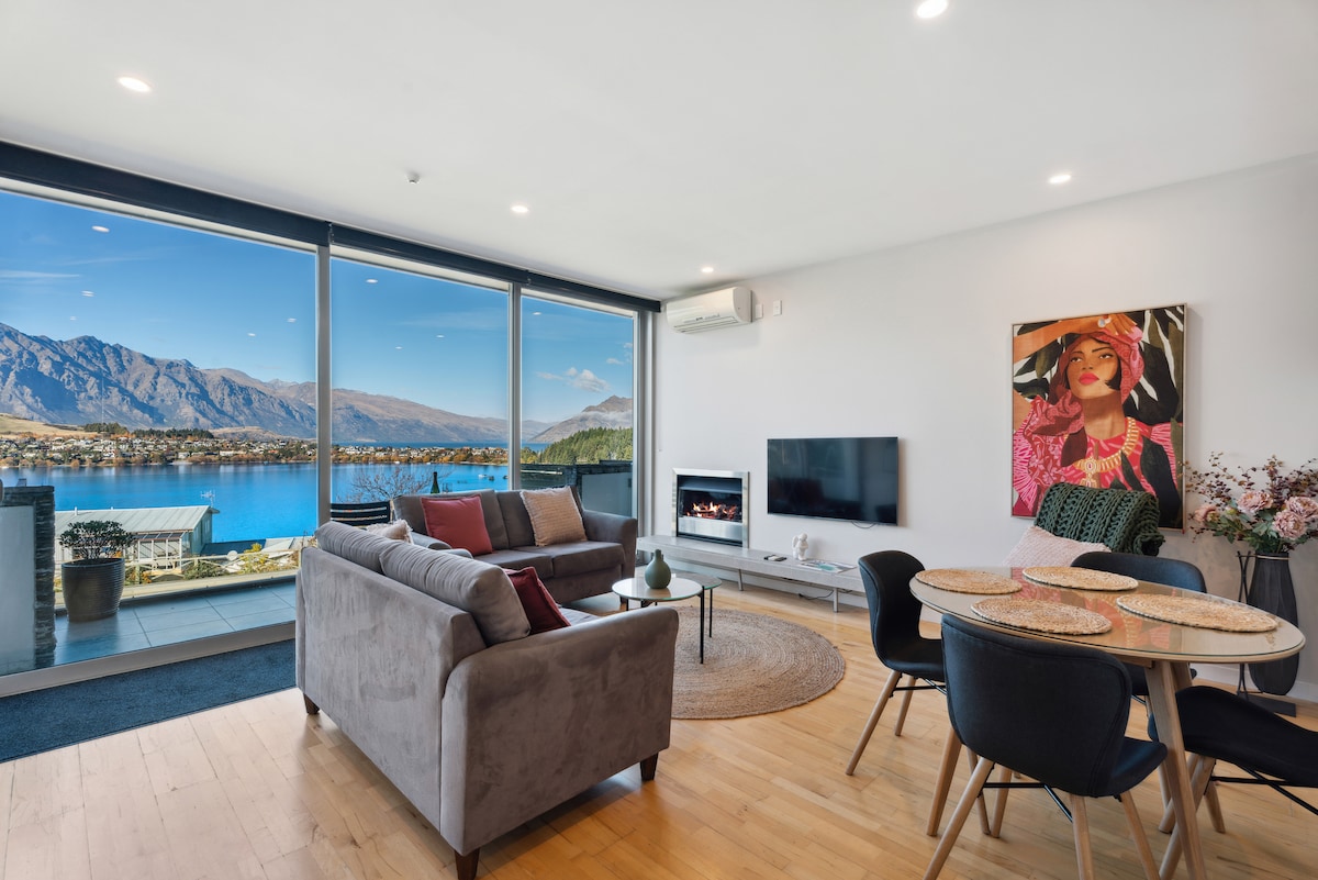Ця тепла гірська квартира з 2 спальнями та 2 ванними кімнатами пропонує розкішні та просторі помешкання з чудовим видом на пік Боба та гондолу. З вітальнею/кухнею/їдальнею відкритого плану та всіма необхідними сучасними зручностями. Вибір ліжка king-size або 2 односпальних ліжок у другій спальні підходить для сім 'ї або двох пар. У декількох хвилинах ходьби від Квінстаун-Уорф, центрального делового району, де можна дістатися до кафе, ресторанів і всіх пам 'яток. Включено 1 підземну парковку, ліфт на 1-й поверх та Wi-Fi.