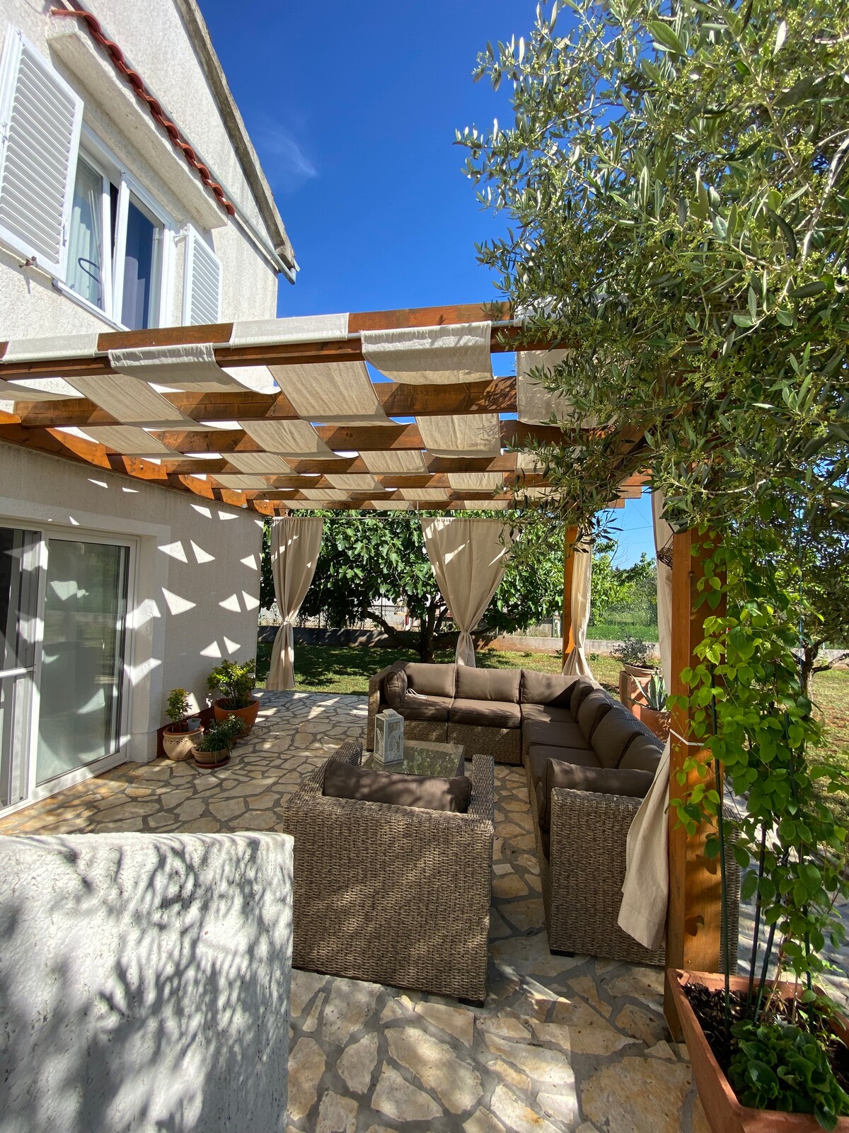 Моє помешкання підходить для пар і одиночних любителів пригод. Вона розташована в оливковому саду, має власний невеликий сад. Він розташований приблизно в 15-20 хвилинах ходьби від пляжу (1000-1100 метрів) і ідеально підходить для людей, які віддають перевагу спокою та усамітненню. Оскільки заміський будинок затишний, ми рекомендуємо гостям приїжджати на автомобілі. Велосипеди можна взяти напрокат в Преко в туристичних агентствах. Електроенергія надходить через сонячну енергію.
