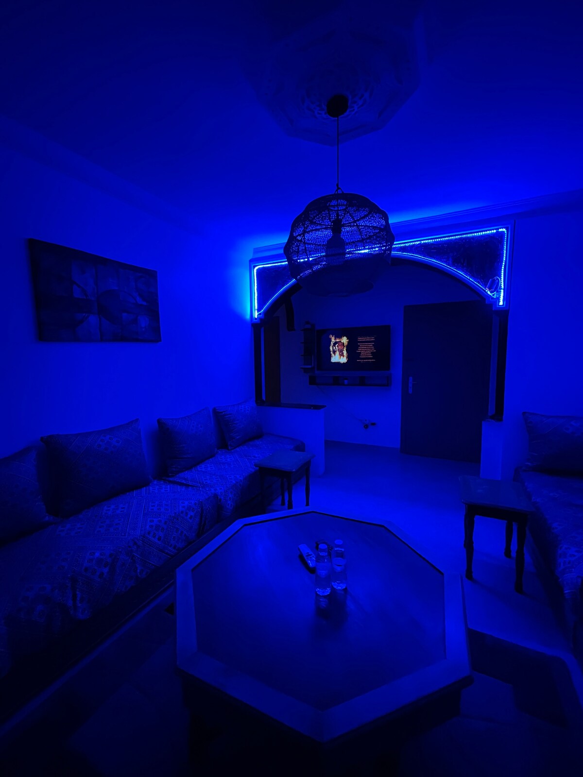 ✨ Stay in our authentic 3-level Riad (80 m²) in the heart of Marrakech. Enjoy a charming patio with fountain, kitchen, dining area, small lounge, guest bathroom, and a bedroom with en-suite on the ground floor. ✨ Upstairs, relax in a second bedroom with private bathroom, plus a reading & TV corner. ✨ End your day on the rooftop terrace, arranged as a summer lounge perfect for sunbathing or magical evenings under the stars. ✨ Comfort, tradition, and Moroccan hospitality await you