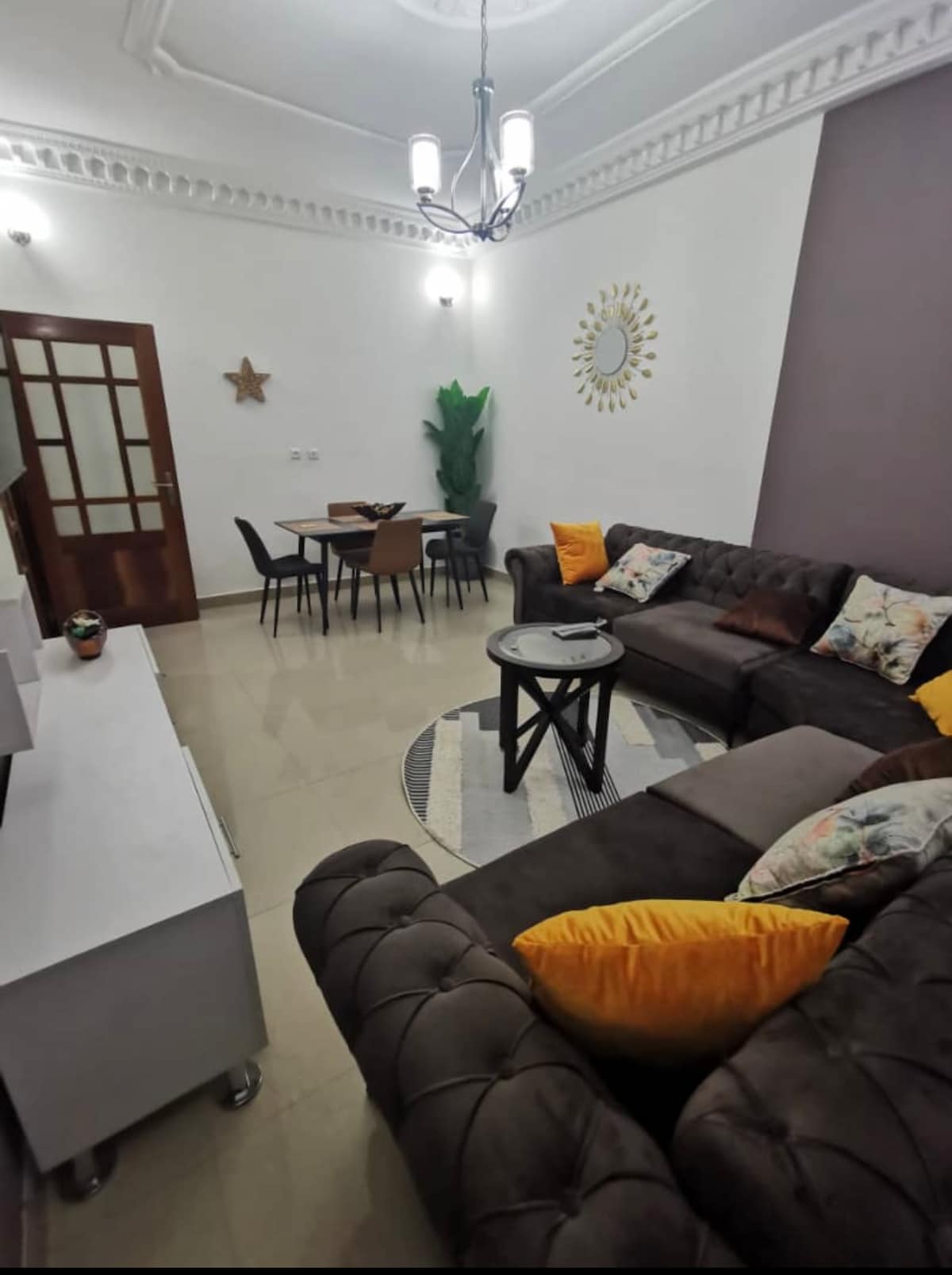 Приємні 3 кімнати (1 розкішна спальня, 1 шикарна африканська спальня та 1 шикарна сучасна вітальня) площею 120 м2, повністю обладнані на першому поверсі чарівної будівлі. Він розташований в центрі розширення Freedom 6, недалеко від VDN і всього, що може запропонувати Дакар: центр міста, магазини та розваги. Тут є всі зручності: обладнана кухня, кондиціонер для всіх кімнат, 2 ванні кімнати (одна для розкішної кімнати та одна для відвідувачів), гаряча вода, пральна машина.