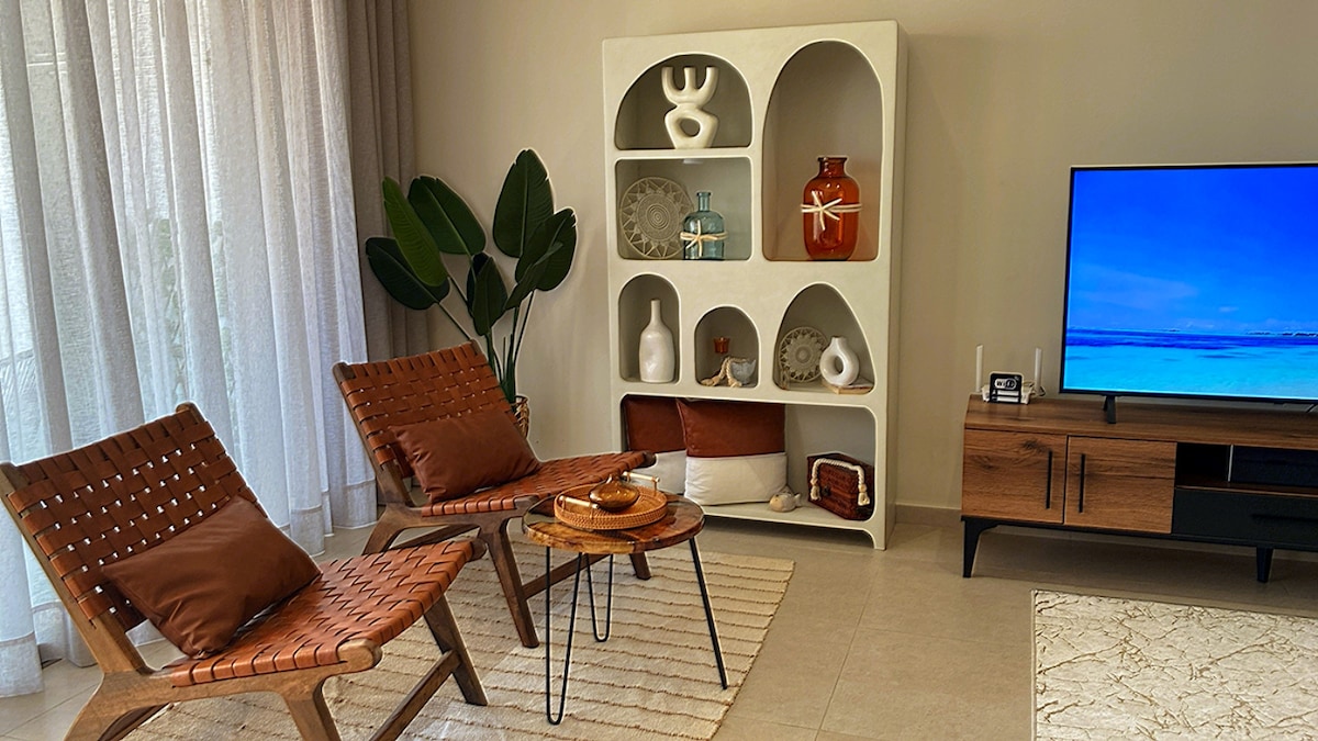 Це унікальне місце розташоване в тихій і спокійній частині Тамраґта з гарним видом на Банановий пляж і всім необхідним поруч. Новозбудований будинок спроектовано з любов’ю та увагою до деталей. Відпочиньте у своїй квартирі з двома спальнями з прекрасним мініріадом або насолодіться заходом сонця на спільному даху, де ви також можете приготувати вечерю на повністю обладнаній кухні на відкритому повітрі, відпочити в лаунж-зоні або попрацювати з хорошим Wi-Fi.