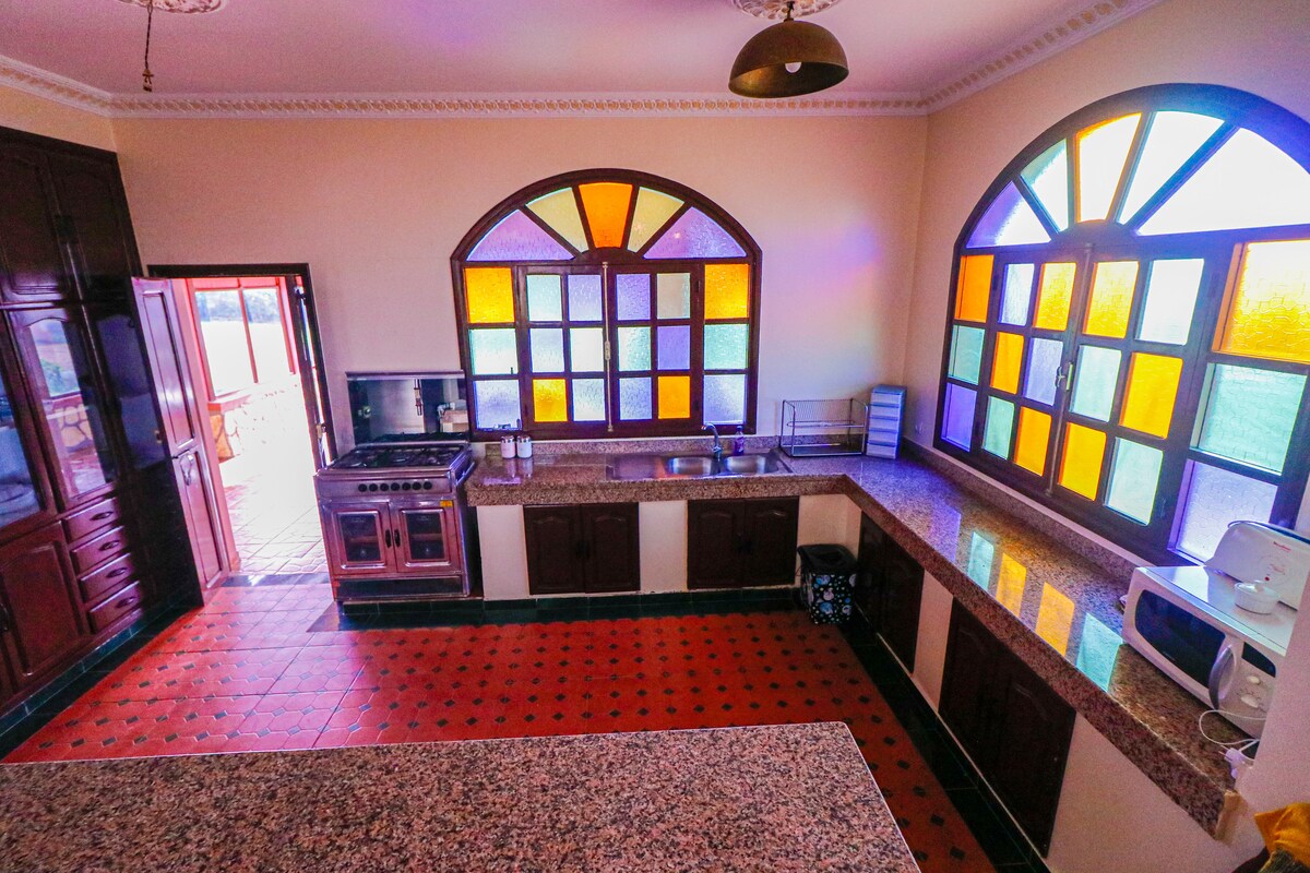 مرحبا بك في فيلا راقية وآمنة بحي البستان بالجديدة على بعد 1كيلومتر ونصف من الشاطىء والكورنيش و20 دقيقة بالسيارة من منتجع مزكان الشهير .جامعة شعيب الدكالي على بعد 5 دقائق طابقين للضيوف مع توفر جميع المرافق بالحي بقالة ،صيدلية ،صالون حلاقة وتجميل وكل ما تحتاجه خلال إقامتك . اصطحب جميع افراد العائلة والأصدقاء الى هدا المسكن الدي يحتوي على مساحة كبيرة لقضاء عطلة رائعة. يوجد مكيف الهواء في غرفة النوم الرئيسية يوجد سكان بالطابق الثاني بمدخل منفصل