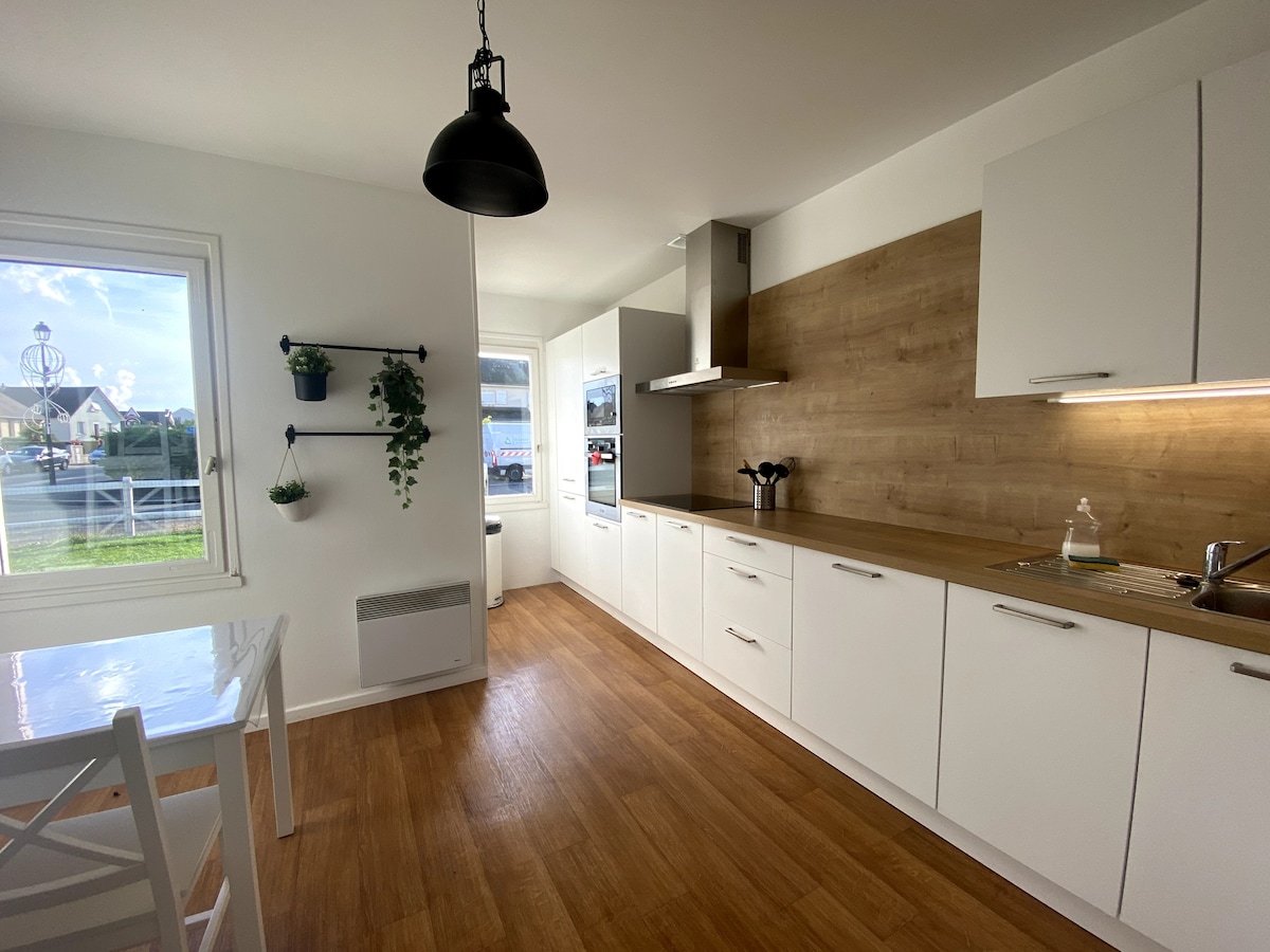 Чарівний фахверковий будинок площею 60 м², розташований у сільській місцевості. Чудове місце для підзарядки батарей у тихому та зеленому помешканні Декор у сільській місцевості та дуже повні зручності Ліжка застеляються після вашого прибуття Можливі самостійні прибуття, магазини та ресторани, до яких можна дістатися автомобілем Спеціально розроблено для перебувань тривалістю від кількох днів до кількох місяців Нове: тепер будинок відомий волокном, що дозволяє працювати в належному стані