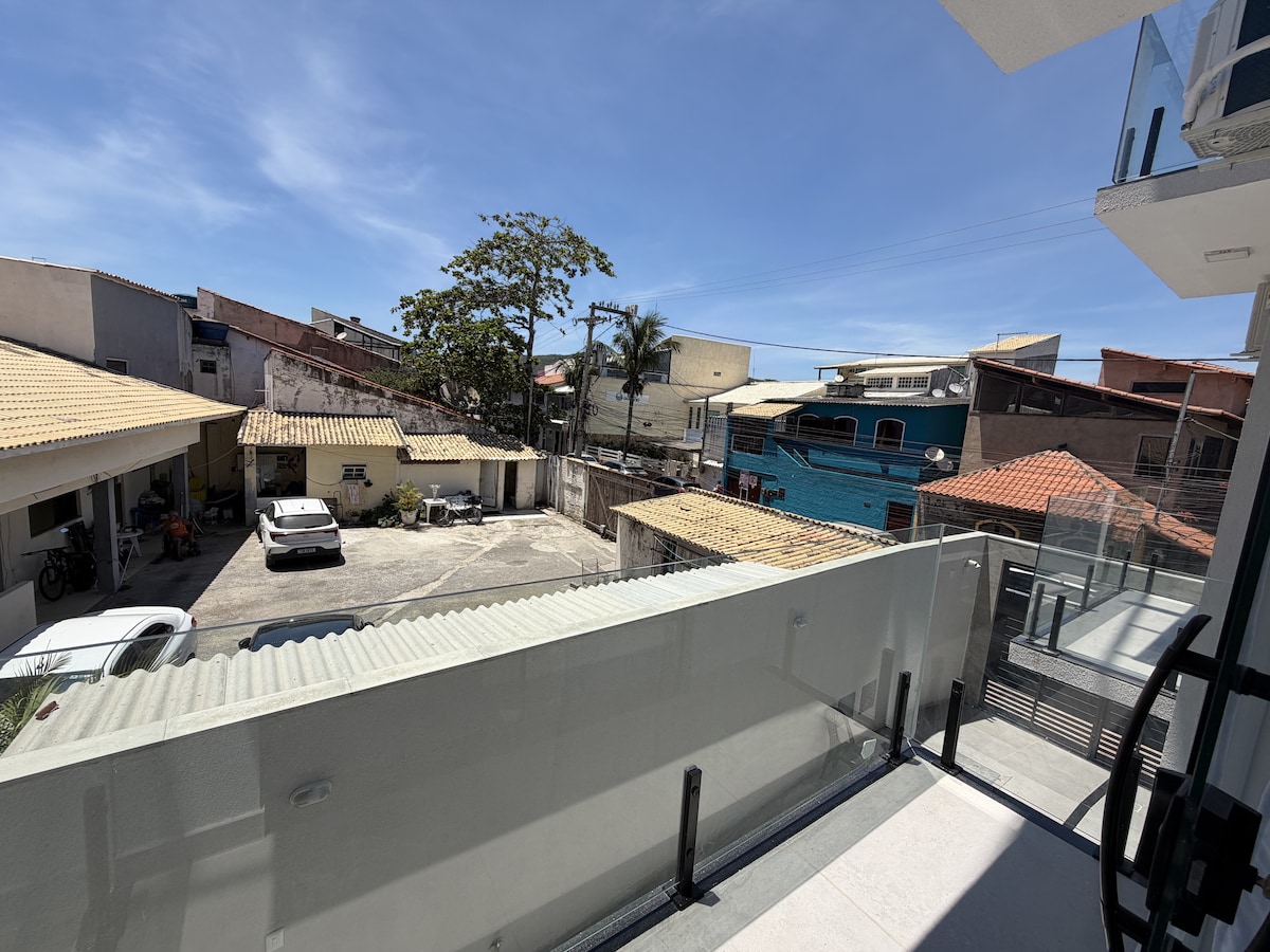 Цей затишний лофт площею 36 кв. м виходить на прекрасну Прайнью і зручно вміщує до 4 осіб. Вид на бірюзове море в Арраяль-ду-Кабу просто чарівний. У помешканні є двоспальне ліжко, диван-ліжко (двоспальне), власна ванна кімната та навіс, обладнаний приладами (без плити). Ідеально підходить для відпочинку та насолоди пляжем з комфортом і практичністю!