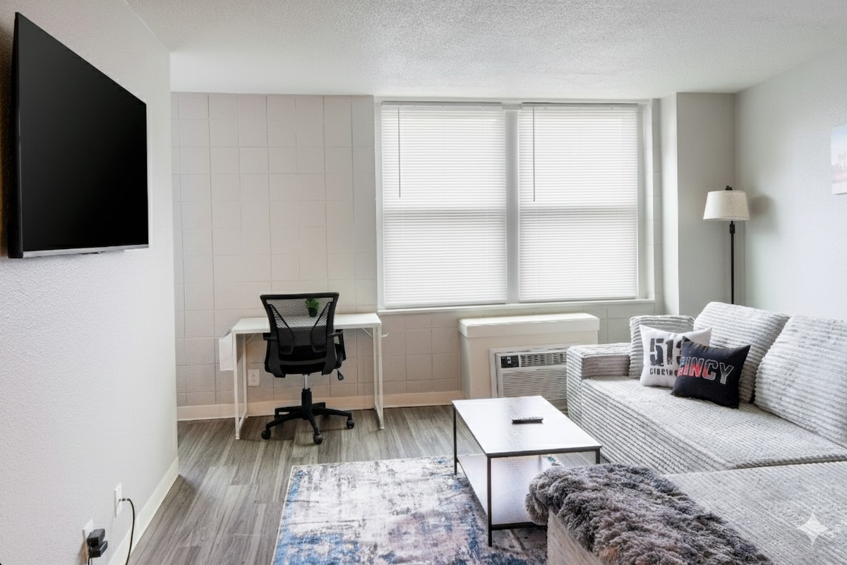 Cincinnati studio just steps from UC, dining, and campus shuttles. Enjoy fast WiFi, comfy beds, and rare free parking, all in a professionally cleaned, pet-friendly space. Ideal for work trips, medical rotations, or easy weekend stays with everything you need! *Conveniently located only a 3-min drive or a 15-min walk from the University of Cincinnati College of Medicine* Just 3- 6 minutes from - Downtown - OTR - The Banks - Paycor Stadium - Great American Ball Park - Hard Rock Casino