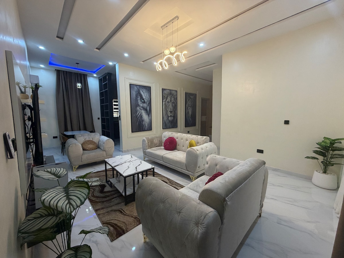 Experience homely living at our stunning apartment in a serene neighborhood. Boasting elegant decor, spacious living area, a peaceful ambience, spacious bedrooms and a fully equipped kitchen. Perfect for short or long stays, it combines the warmth of home with the sophistication of premium hospitality.