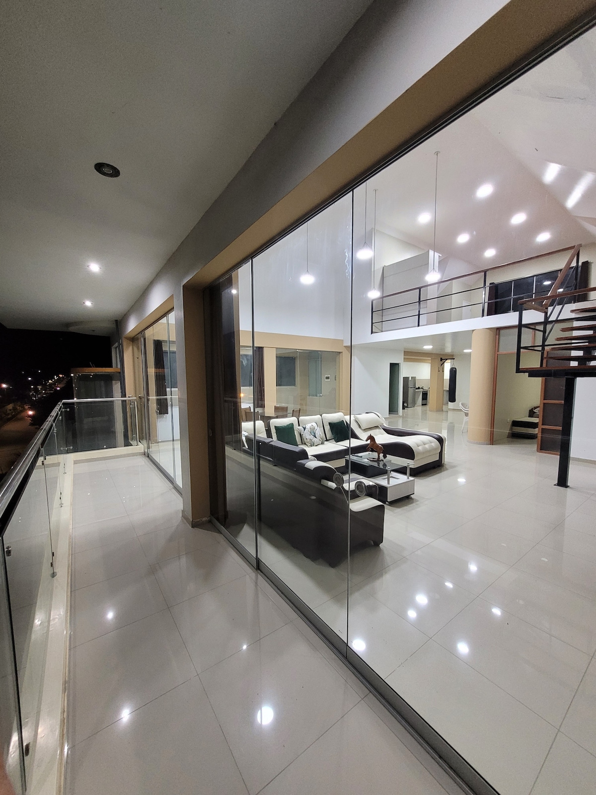 Relájate en este espacio tan tranquilo y elegante en contacto con la naturaleza, rodeado de árboles altos y antiguos que cantan con el viento, viendo a las aves, luciérnagas y las estrellas desde nuestras terrazas amplias en cómodas tumbonas acolchadas o desde dentro por nuestros amplios ventanales y mamparas. Cocina cómodamente con todos los artefactos necesarios, disfruta de tus películas favoritas en una amplia sala o trabaja con un WiFi estable a un paso del bosque y 10 min de la ciudad.