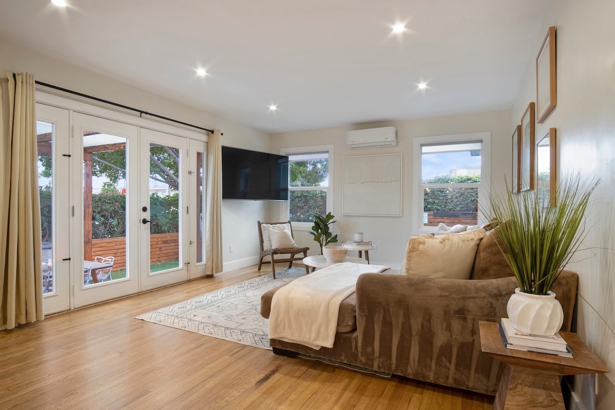 Це стильно оновлене класичне бунгало SoCal розташоване в центрі Пасифік-Біч і є прихованою перлиною! У затишному люксі є розкішна спальня, дизайнерська вітальня/міні-кухня та оазис для розваг на відкритому повітрі, який надає додаткове житлове приміщення, щоб насолоджуватися сонцем, відпочити біля вогнища, побачити гру та пообідати на відкритому повітрі. На відстані прогулянки від усіх місць, які може запропонувати PB, серфінг Hideaway у Сан-Дієго подарує незабутні спогади та враження на все життя.