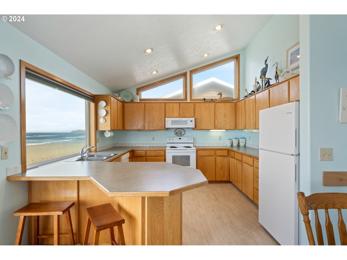Oregon Oceanfront modern luxury home with floor-to-ceiling beach views. Enjoy over 150' of Ocean frontage on the property, the most in Pacific City, Tierra Del Mar and throughout much of the Oregon coast. A perfect place to gather with family and friends or a romantic getaway! Enjoy beautiful sunsets, long walks on the beach, evening bonfires, and direct beach access. A well-equipped kitchen to create the perfect meal and a refreshing outdoor shower after a day of surfing and sand.