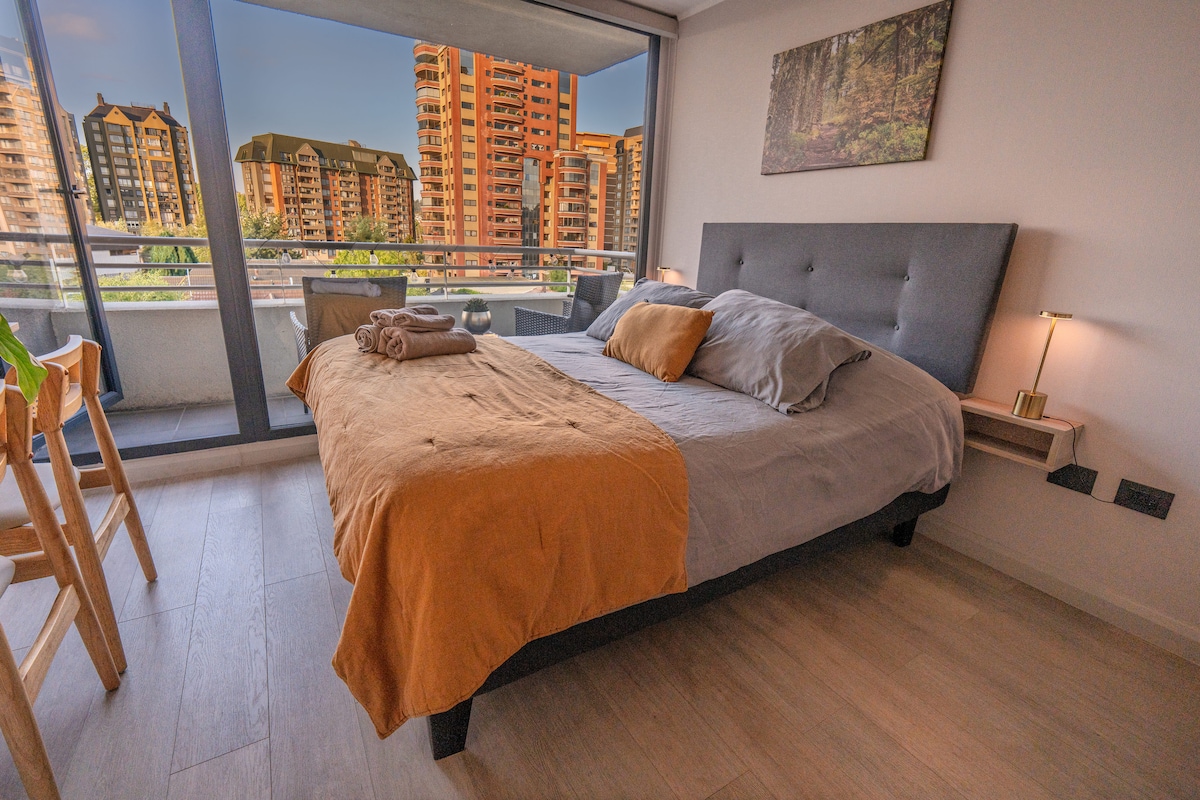 Departamento equipado para 3 personas, una cama matrimonial e individual, cuenta con escritorio y silla para estancias por trabajo, locomoción cercana al condominio, de todas formas el departamento cuenta con su estacionamiento privado incluido. Cocina equipada apta para cocinar concerjeria 24/7 frente al departamento. Acceso via chapa electrónica , no se requiere llave.