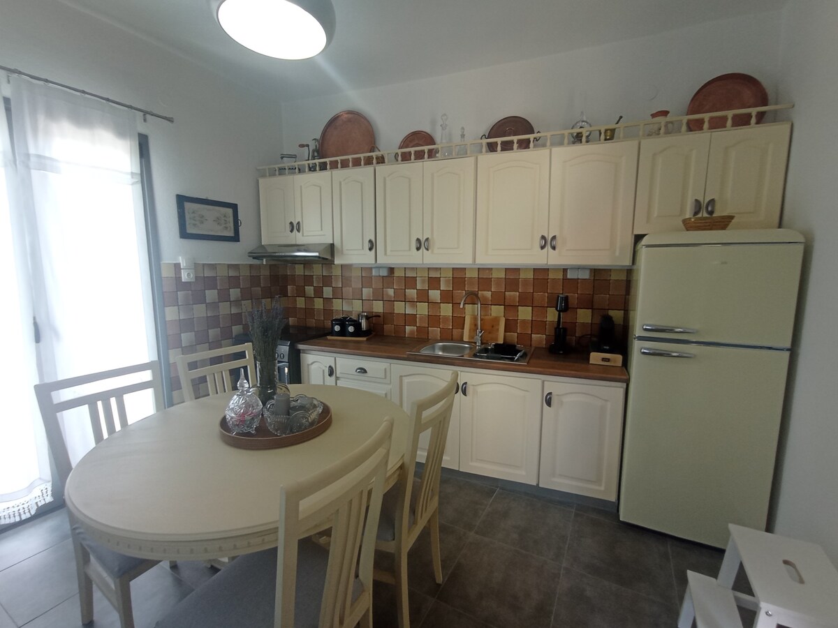 Це нова квартира, орієнтована на комфорт гостей, ідеально підходить для пар та бізнесменів. Розташована в центрі міста, з видом на море та Піліон. Вона знаходиться всього в 1 хвилині від пляжу, в 3 хвилинах від причалу порту і в 2 хвилинах від вулиці Ерму.