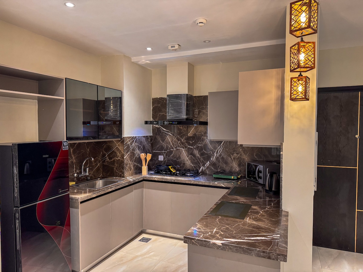 Наш пентхаус Orbit з 1 спальнею в районі DHA Phase 5 – це місце, де міський шик поєднується з неземною прохолодою. Уявіть: стіна з місячним світлом для селфі пізно ввечері та виразний арт-об’єкт із купюрами доларів, який випромінює «енергію головного героя». Прокиньтеся з видом на парк з вашого приватного балкону, насолодіться улюбленими серіалами на 50-дюймовому телевізорі 4K Smart TV або приготуйте щось естетичне на повністю обладнаній дизайнерській кухні. Інтер’єри? Абстрактні, стильні, створені для фото. Крім того, ви будете поруч із найпопулярнішими ресторанами Лахора.