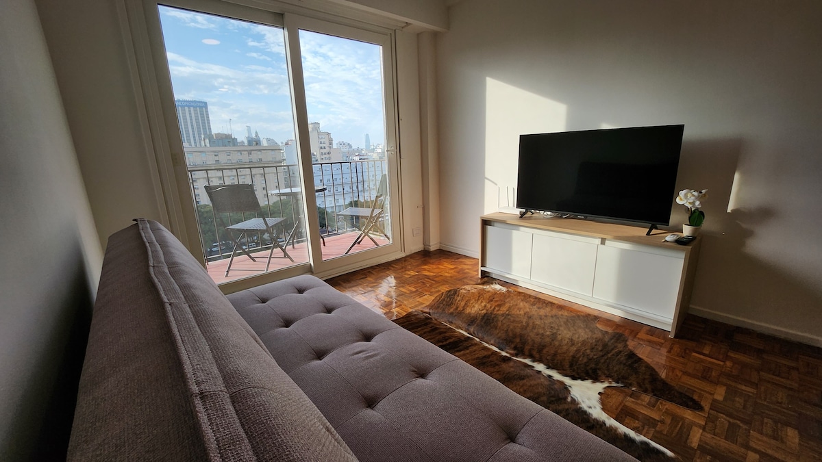 Сучасна, світла та приватна квартира, нова. Розташування у супер центральному місці. Площа 34 м² плюс балкон, кондиціонер і телевізор з кабельним телебаченням. 4 квартали від Обеліско, 2 від проспекту Corrientes та 2 de la Av. 9 de Julio. Ви зможете прогулятися до кінотеатрів, театрів, кафе, ресторанів, музеїв, записів і всього, що може запропонувати Буенос-Айрес. Фотографії актуальні та на 100% реальні. Вам допоможе мій співгосподар, який живе дуже близько. За 30 метрів від будівлі знаходиться гараж із гаражами.