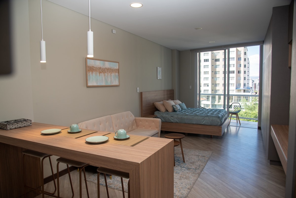 Ласкаво просимо до Mondrian Home Studios! Маючи понад три роки досвіду прийому гостей, я пропоную безпечне та надійне перебування в сучасній квартирі-студії. Насолоджуйтеся такими зручностями будівлі, як коворкінг, кафе та тераса на даху з видом на місто. Розташований в одному з найбезпечніших і найяскравіших районів Кочабамби, ви будете в декількох кроках від магазинів, ресторанів, барів, торгових центрів і парку прямо через дорогу. Забронюйте помешкання для комфорту, зручності та перевірки успішних гостей!