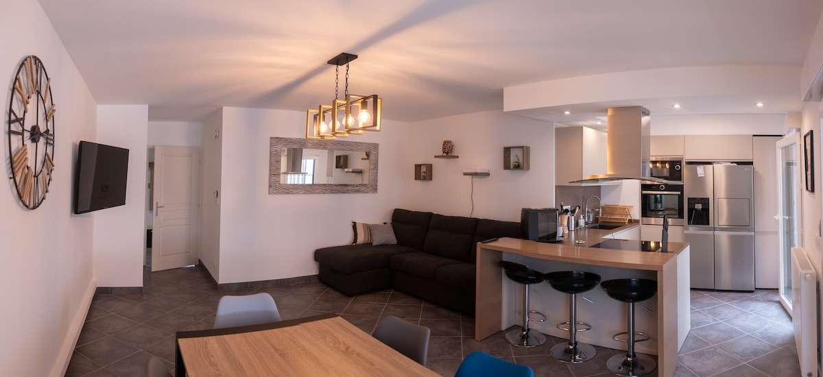 Ця квартира для відпочинку з 1 спальнею ідеально розташована на порозі головної центральної площі. Вона виграє від затишку престижного району Карр-д 'Ор, але всього в 3 хвилинах ходьби від шумного Старого міста, набережної та пляжів. Інтер 'єр відповідав французькому стилю з поєднанням сучасного та старого. Прикрашена шикарною, елегантною та теплою ідеєю для коротких або триваліших бронювань. Насолоджуйтеся розслабленим стилем життя на свіжому повітрі на тихому сонячному балконі.
