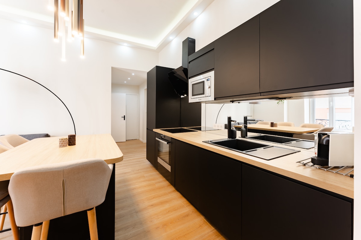 Квартира T2 площею понад 50 м² з терасою. Quartier Carre d 'Or near to Hotel Negresco and Promenade des Anglais. Ви матимете всі зручності пішки. Якісні послуги з этанольним каміном. Повністю обладнана кухня з посудомийною машиною, духовкою, сушильною машиною для прання, кофемашиною Nespresso, чайником, тостером.