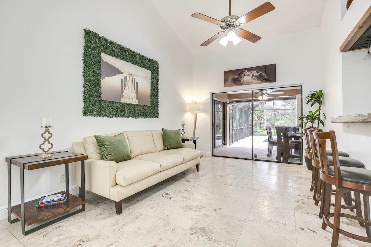 ☆ Знижка 5% для військових і служб екстреного реагування ☆ Відвідайте наш оазис на Балі в центрі Делрей-Біч! Пориньте в яскраву культуру міста, насолоджуючись місцевою їжею та шопінгом. Здійсніть коротку поїздку на незайманий пляж, щоб весело провести день купання, сапсерфінгу та катання на човнах, або вирушайте на озеро Іда для спокійної риболовлі. Відпочиньте на спокійному задньому дворі. Відновіть сили та отримайте тривалі спогади разом із близькими. Ласкаво просимо!