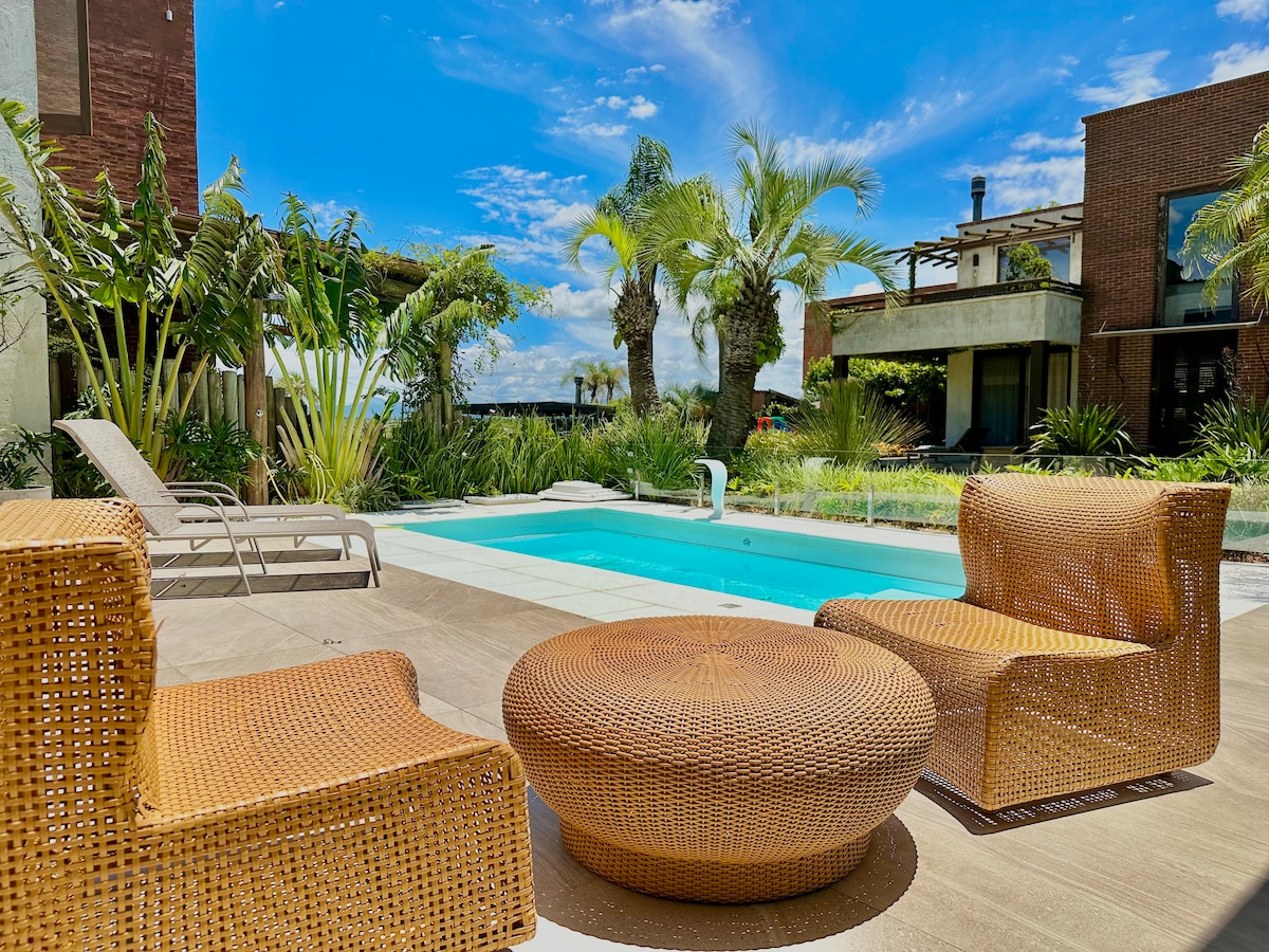 Унікальне помешкання в приватному кондомініумі з лише 10 будинками з ексклюзивним доступом до лагуни та інфраструктурою, яку намагаються описати на фотографіях... Будинок дуже просторий і повністю кондиціонований, має 4 апартаменти, приватний басейн, внутрішню та відкриту обідню зону та великі кімнати. Кондомініум знаходиться в 300 м від найбільшого супермаркету міста, і до нього легко дістатися на Av. Парагуасу. Менше 5 хвилин на автомобілі ви на набережній або в 20 хвилинах їзди в центрі каное Капаан-да. Портал у районі Імбе!