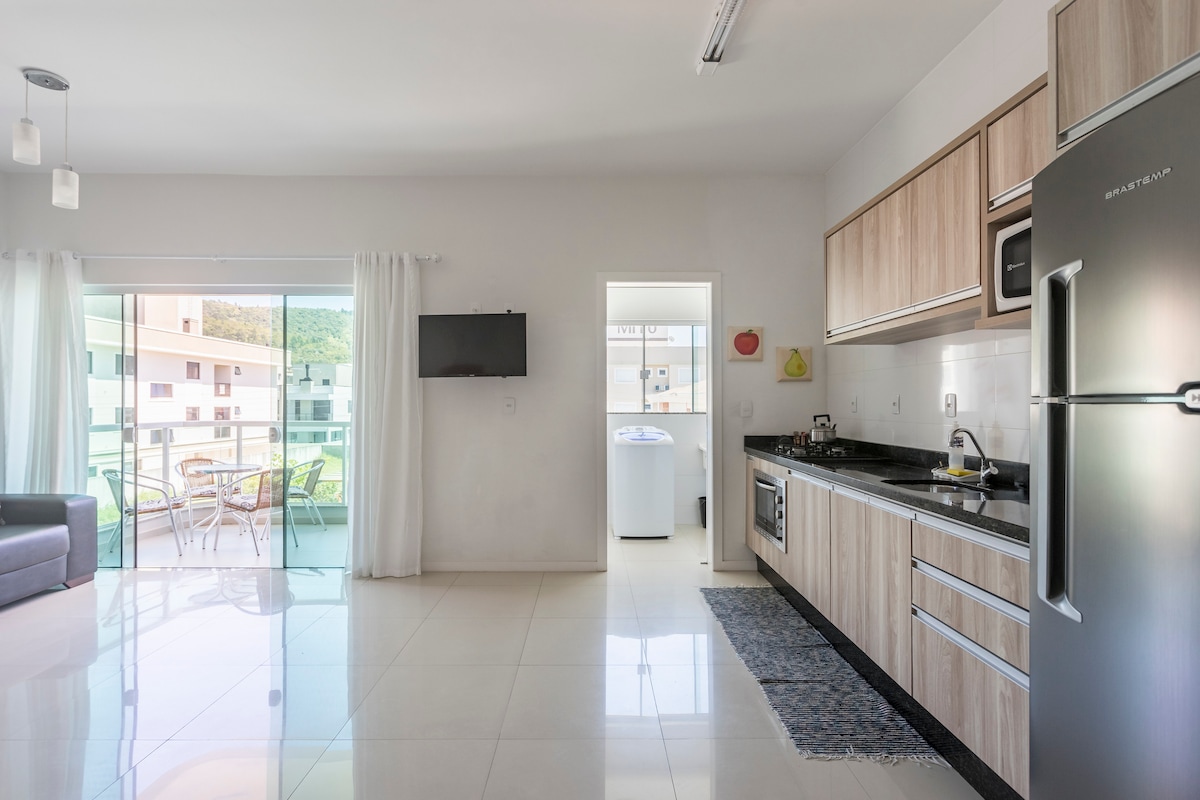 Красива квартира з 2 апартаментами + ванною кімнатою + ванною кімнатою, індивідуальними меблями, обладнана кондиціонером у 2 апартаментах і у вітальні, Smart TV, Wi-Fi, пральною машиною, пральною машиною та сушкою, повністю обладнаною кухнею. Усі кімнати добре провітрюються. Приватний гараж. Ап - це чудово і завершено!! Вітаються гості будь-якого походження. Пляж Палмас-Біч - в Губернатор Селсо-Рамос - SC. Красивий, чистий пляж. Море підходить для купання. До пляжу можна дістатися пішки. Пляж бажають місцеві жителі та туристи.