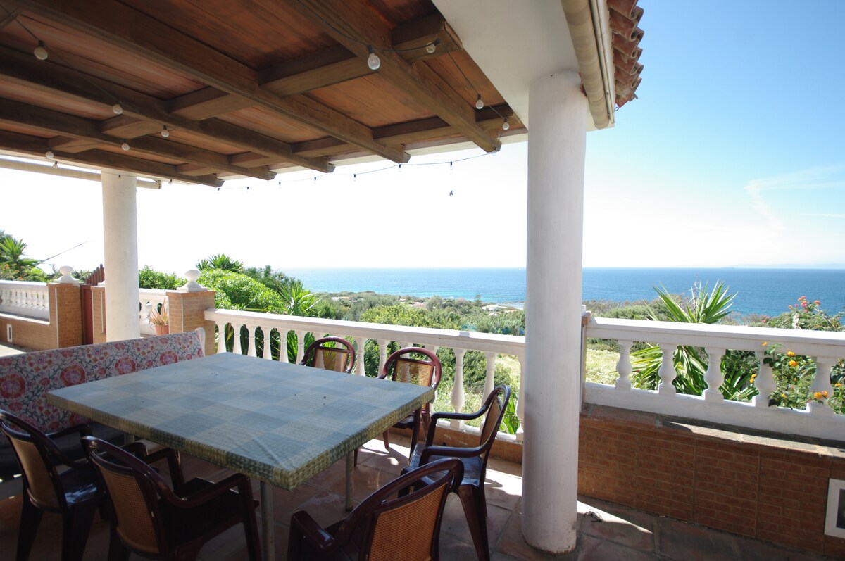 Unique 3 bedroom beach house apartment with private terrace and direct access to an almost deserted beach For up to 4persons Luxury interior Cool summer breeze on the outside covered terrace with stunning view over the street of Gibraltar A memorable holiday listening to the waves gently breaking on the sea shore Stunning sea view with Marocco just 12km away on the horizon Situated just 15min drive from Tarifa 2 restaurants within walking distance The villa contains 2 apartments