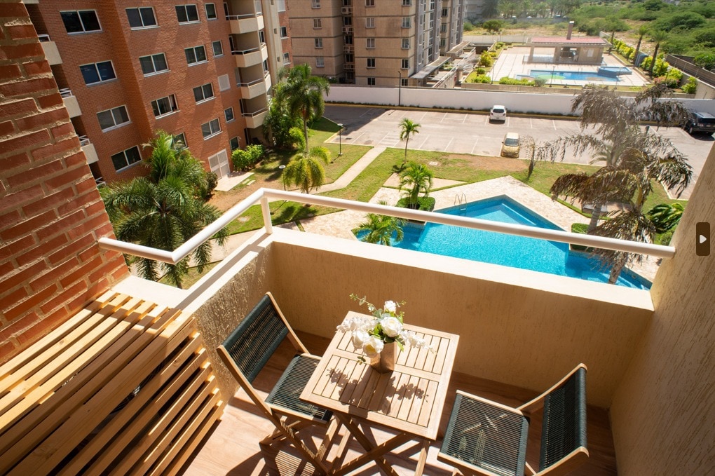 Apartamento con vista al mar y a la piscina, La Ubicación es espectacular, A escasos min de playas de Pampatar y de 5 a 7 min de centros comerciales (Sambil, La Vela, Costa Azul), supermercados y restaurantes. Habitación con cama king con vista al mar y a la piscina Comodidades: Internet Fibra Optica, WIFI, tanque de agua, piscina, cocina, aire central, calentador, lavadora, TV con Disney, Netflix Ideal para parejas o negocios Seguridad, Vigilancia 24/7 y estacionamiento privado incluido