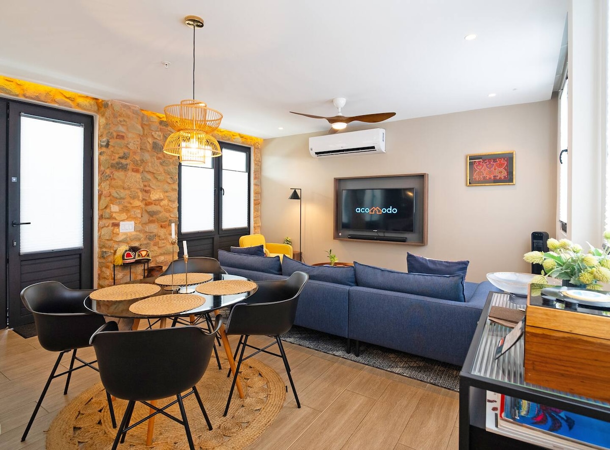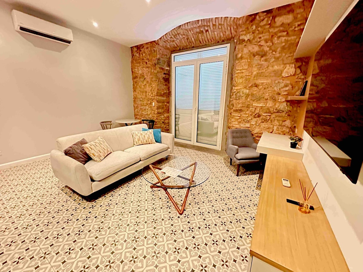 Ця гарна відреставрована студія 1870-х років поєднує історію з сучасним дизайном. Насолоджуйтеся приватною терасою на даху з місцями для відпочинку та барбекю, а також приватним ПАРКІНГОМ – ідеально після відвідування найкращих ресторанів, галерей та нічних клубів Каско, що знаходяться поруч. ✨ Переваги: – Історичний шарм: оригінальні кахельні підлоги та відкриті колоніальні кам’яні стіни. - Комфорт: двоспальне ліжко, вітальня та повноцінна кухня. - Зручності: приватний дах і приватна ПАРКІНГ. - Чудове розташування