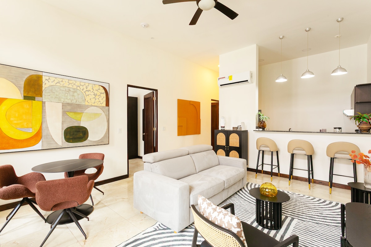 Sumérgete en el encanto histórico y la elegancia moderna de nuestro loft de 3 recámaras y 150 m2, en el corazón del Casco Antiguo. Con pisos de madera que irradian calidez y una cocina moderna de diseño abierto ideal para compartir, este espacio garantiza unas vacaciones memorables. Situado en la Avenida A, te encontrarás a solo unos pasos de exquisitos restaurantes, museos, iglesias coloniales y los codiciados rooftops del Casco, convirtiendo cada día en una aventura.
