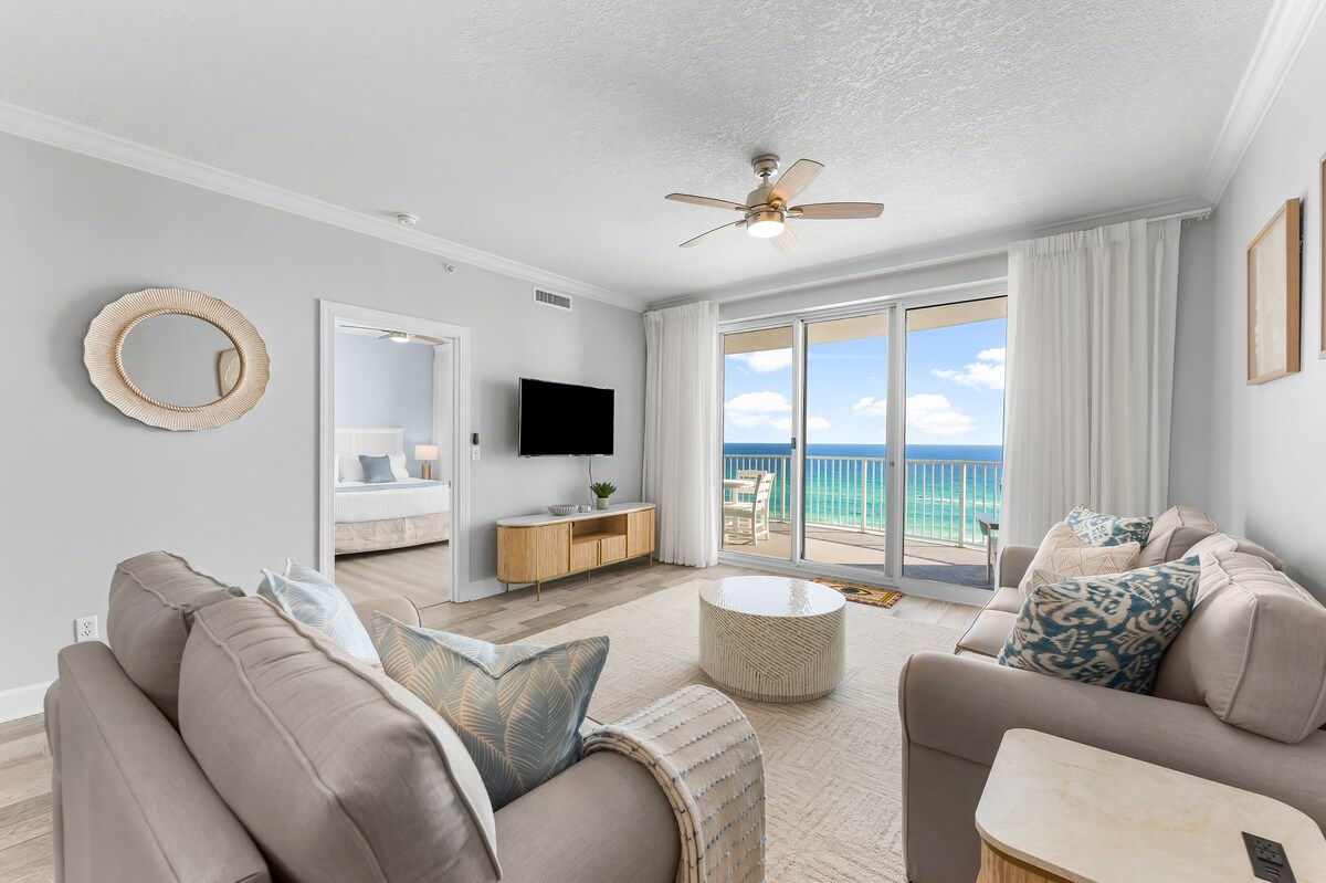 **Примітка. Для бронювання має бути щонайменше 25 років. Насолоджуйтеся прекрасними закатами на одній з найбільших терас на Панама-Сіті-Біч. Нещодавно оновлений кондомініум на березі океану з захоплюючим видом і легким доступом до пляжу. Гарна вітальня на вулиці з видом на басейн і океан. Насолоджуйтеся епічними заходами сонця та солодким білим піском у просторому кондомініумі з 4 спальнями та 4 ванними кімнатами, який комфортно розміщує наших гостей. Дві головні спальні Gulf Front із балконами.
