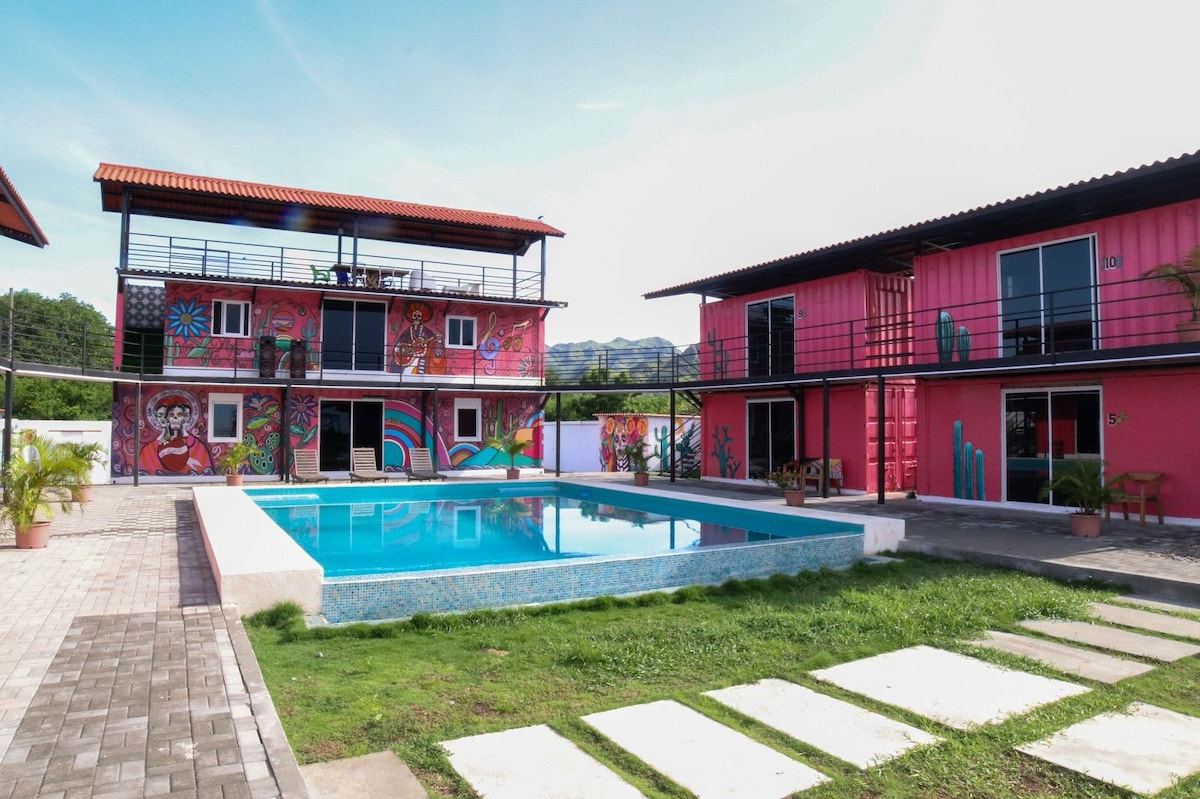 Наші апартаменти-студії пропонують комфорт і зручність на Тихоокеанському узбережжі Панами, між Плайя-Коронадо та Плайя-Бланка, недалеко від Ель-Вальє-де-Антон. Кожна студія має повністю обладнану кухню, двоспальне ліжко розміру Queen size та власну терасу всього за кілька кроків від моря. Завдяки приватному виходу на пляж і персоналізованим послугам консьєржа це помешкання ідеально підходить для пар або індивідуальних мандрівників.