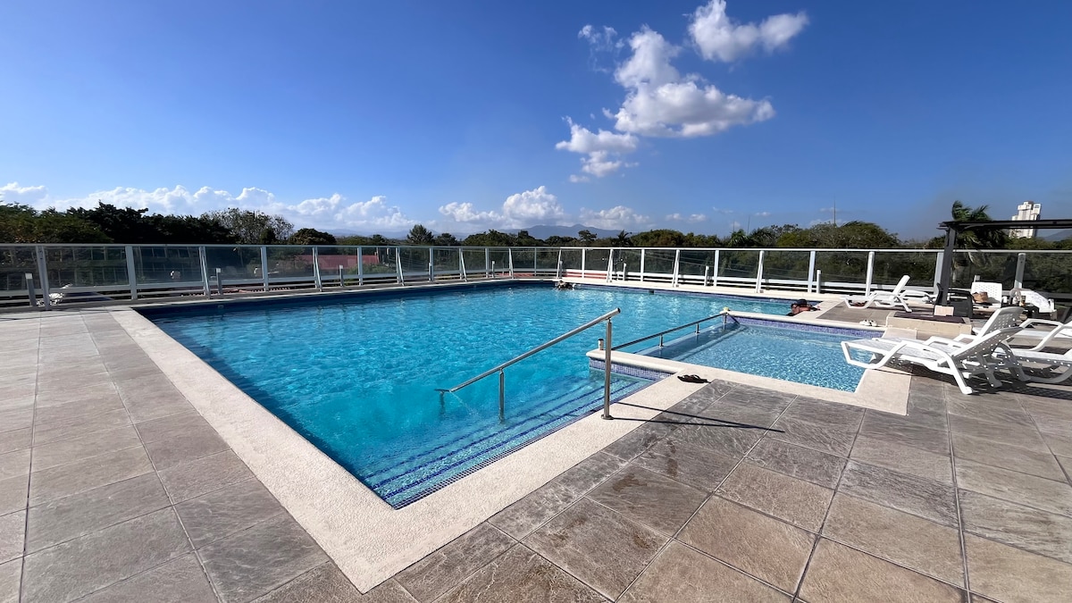 🩷 Насолоджуйтеся соціальним простором, тренажерним залом, 🩷 басейном, напівприватним джакузі, критою терасою. Чи є кращий спосіб приїхати й відпочити вдвох у цьому тихому й елегантному помешканні? У цьому помешканні також є приватна тераса з вашої кімнати. Якщо ви з сім’єю, у нас є ще один лофт, який ви можете орендувати, або навіть повний будинок з 4 спальнями, який може вмістити до 8 осіб (інше оголошення). ** Зовнішній простір (кухня/барбекю) є спільним з іншими потенційними гостями.