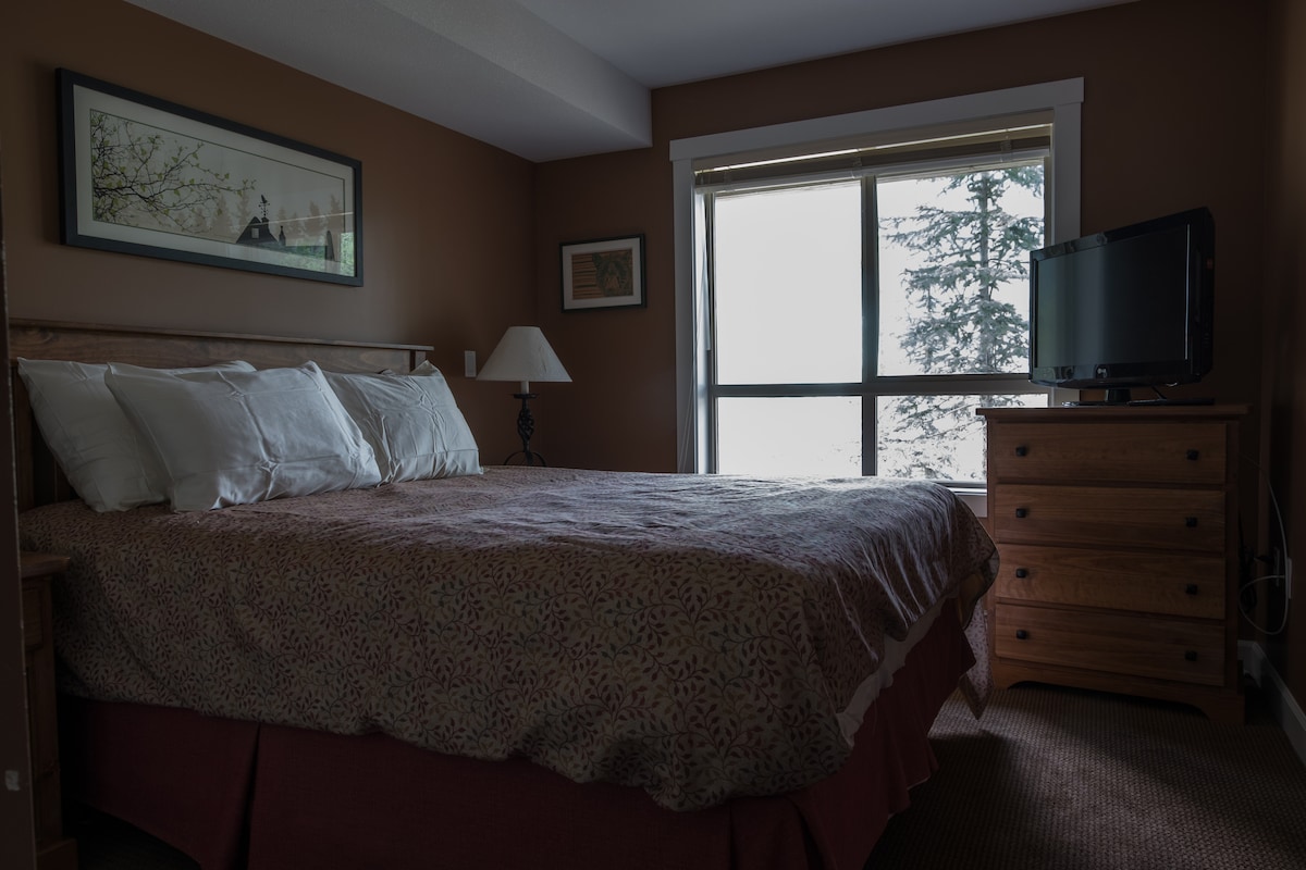 This 2-bedroom, 3-bed unit is one of the few located right beside the Toby Chairlift. Enjoy true ski-in/ski-out access to green runs, with a scenic ski bridge you get to ski on your way down. Guests have full access to 2 summer swimming pools and water slides, year-round heated pool and several hot tubs, sauna, and gym. Just steps away from tennis courts, mini golf, heli-skiing, restaurants, pubs, general store with groceries, essentials, wine, and beer. No need to drive anywhere!