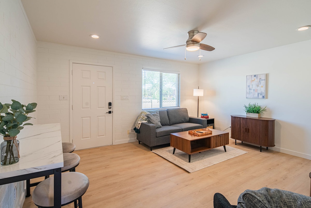 Розташований у тихому центрі Старого міста Скоттсдейла, у нас є цілорічний БАСЕЙН ІЗ ПІДІГРІВОМ і СУПЕРШВИДКИЙ WI-FI. У цьому безпечному анклаві ми знаходимося в 5-10 хвилинах ходьби від відомих ресторанів, магазинів, барів, музеїв та весняних тренувань. Ми пропонуємо кухню шеф-кухаря, розкішні рушники та постільну білизну, телевізор 4K з Roku та безкоштовний NETFLIX, Nespresso та класичні кавоварки з кавою Starbucks, кондиціонер, стельовий вентилятор у спальні, спеціальну криту парковку, ліжко Tempur-Pedic king-size, диван-ліжко та красиву ванну кімнату. Кондомініум розрахований на 4 спальних місця.