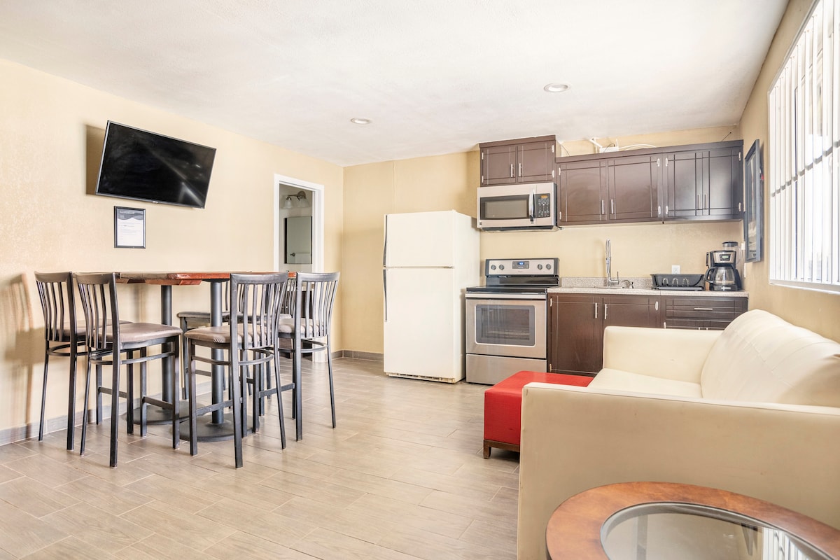Цей блок має свій унікальний стиль. Він повністю чорний, що робить його ідеальним для відпочинку та відпочинку в улюблених фільмах/серіалах. Матрац розміру King size і 75-дюймовий телевізор *Кондиціонер/обігрівач *Швидкий Wi-Fi *Все на фото повністю ПРИВАТНЕ Насолоджуйтеся прекрасним заходом сонця з нашої ванни для двох осіб і тераси (найкращий вид у цьому районі!)🌅 Кухня на відкритому повітрі🍳/ Вітальня з місцем для багаття та кінотеатром! 🎥 Розташоване в закритому житловому приміщенні (цілодобова охорона) Пішки до місцевих барів, ресторанів і пляжу Малібу (~ 1миля)