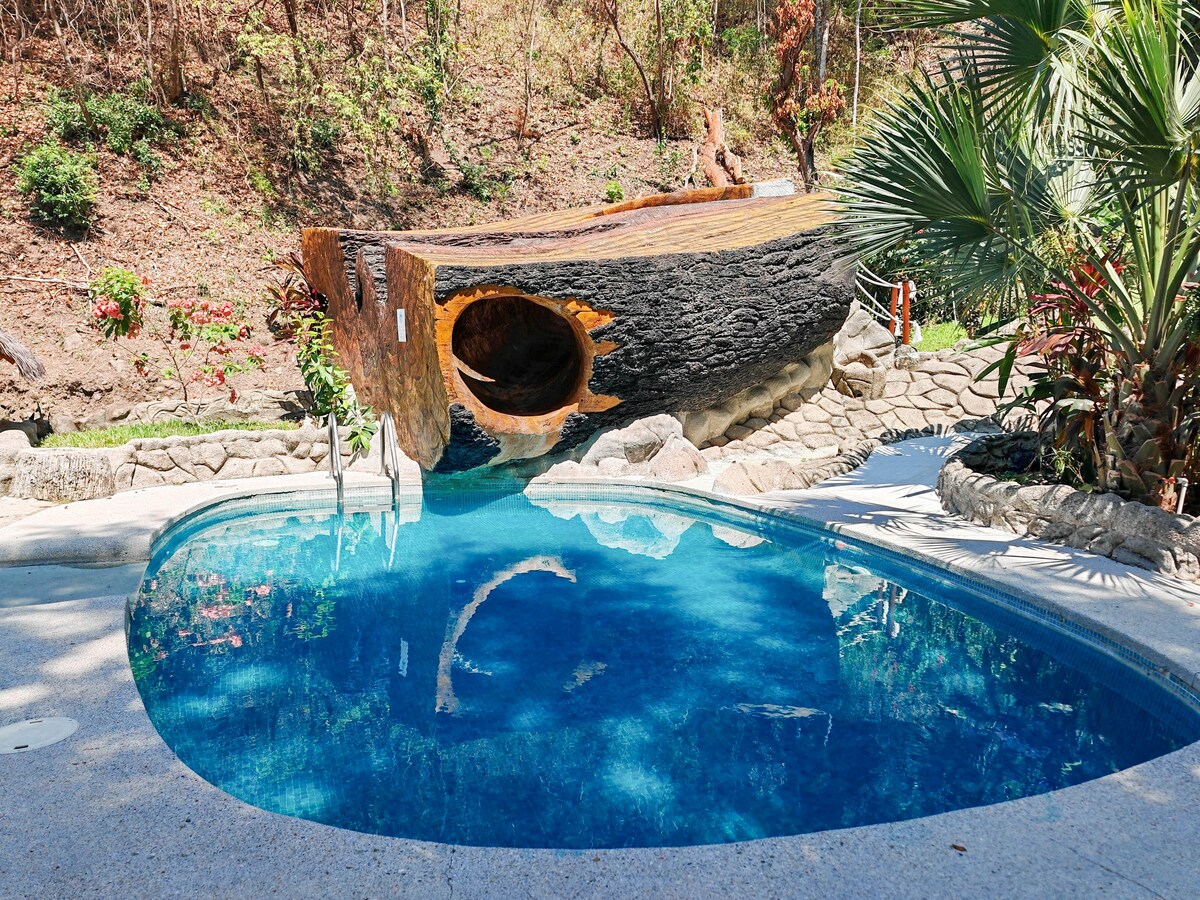 Прокидайтеся з мавпами. Цей сучасний будинок розташований за 75 метрів на пагорбі від центру Монтесуми. Комфортне місце для відпочинку та відчуття глибоко в джунглях, перебуваючи неподалік від міста, пляжів і водоспадів. Рай у джунглях. Ми подаємо сніданок щоранку! Зверніть увагу: роботи в ЗЕЛЕНОМУ СЕЗОНІ - з 1 травня по 15 листопада НЕ ВКЛЮЧАЮТЬ ПЕРСОНАЛ ЗІ СНІДАНКОМ або РЕСЕПШЕНОМ.