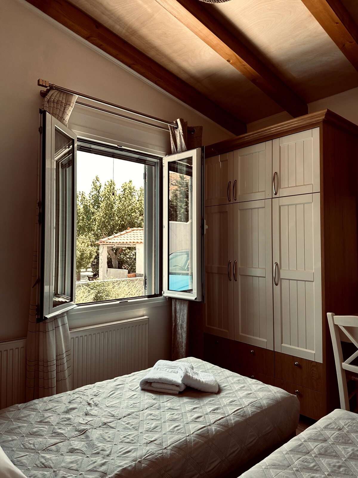 Традиційний будинок Лімнос. Вміщує 4 особи, ідеально підходить для сім 'ї. Будинок розташований в красивому та затишному місці пляжу Агіос Іоанніс. Зовні є патіо та балкон, де можна насолодитися дивовижним видом на море та заходом сонця з розслаблюючим напоєм або перекусом. Це лише в 2 хвилинах ходьби від пляжу (75 м.), в 10 хвилинах їзди від центру міста Міріна і в 20 хвилинах їзди від аеропорту. Для того, щоб відпочити на острові, рекомендується взяти напрокат автомобіль, а поза будинком знаходиться приватна парковка.