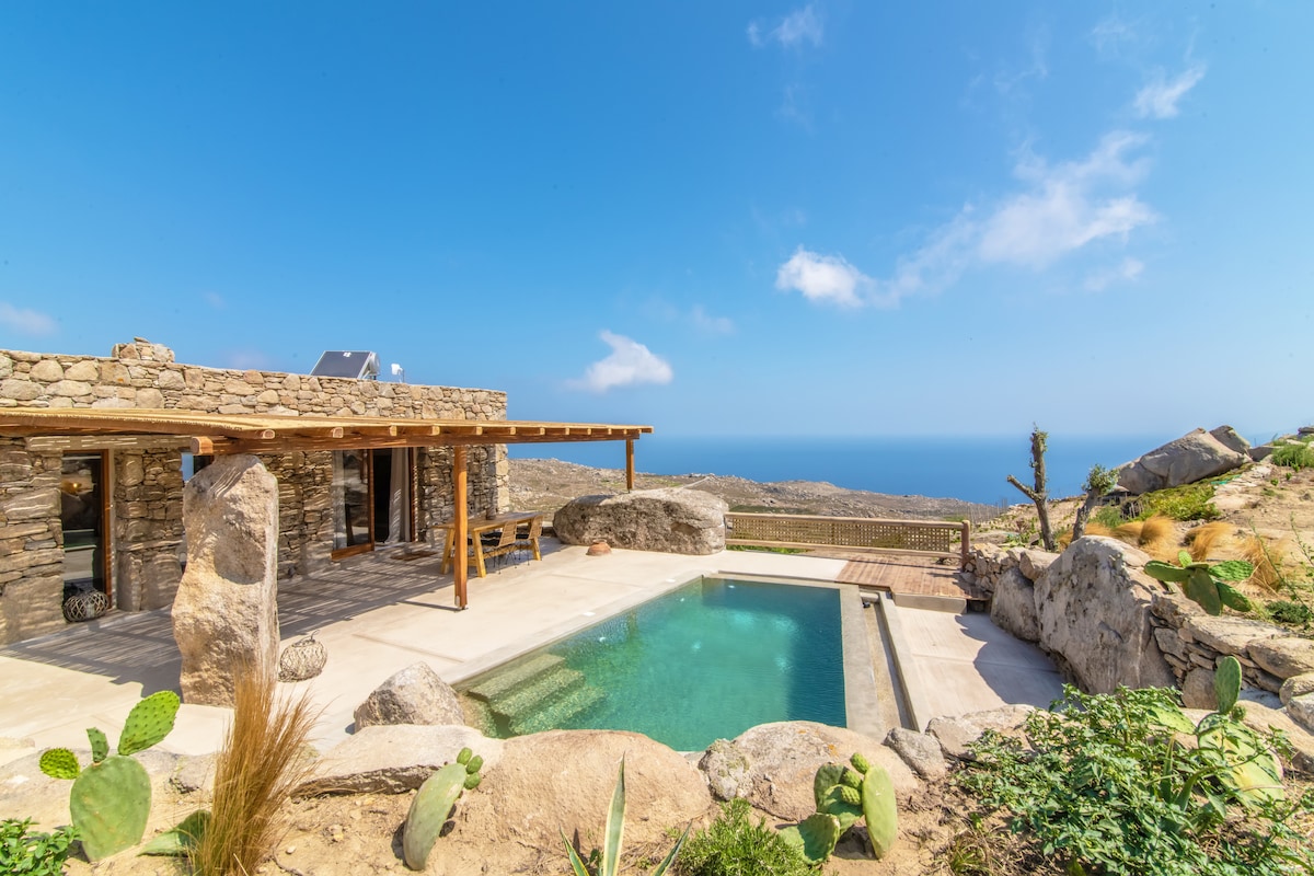 Cycladic home in Tinos island, Greece Recently built with high standard requirements, our modernly designed Villa is perfectly located just 3 minutes away from Agios Romanos beach (1 km) and 15 minutes from the town center (6.5 km). Its unique location allows you easy access to the most popular areas of the island.