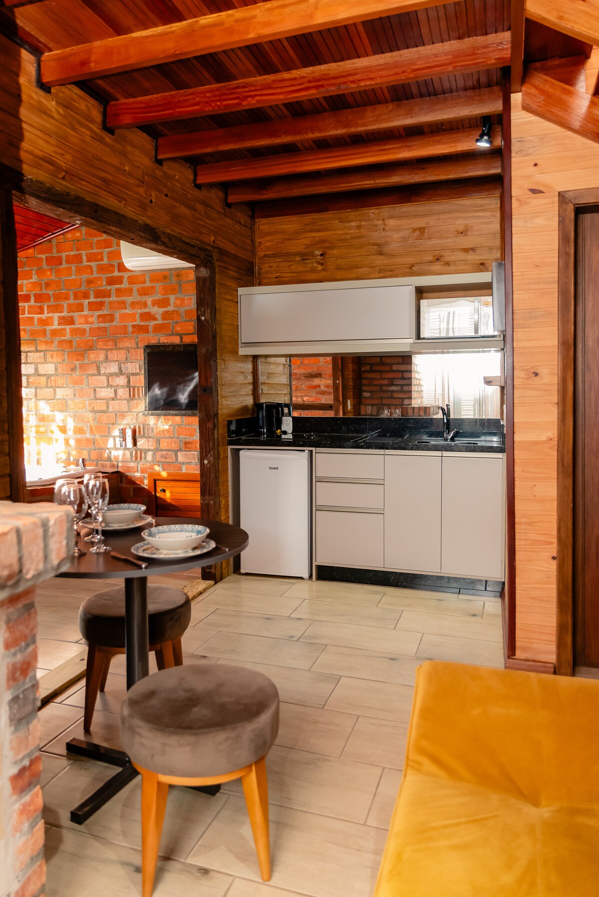 Дивовижне місце! Чудове місце для відпочинку, відключення від міського життя та спілкування з природою. Поруч із центром міста Грамадо цей будинок змушує нас потрапити до чарівного світу на фермі! Новий будинок, чисті, зі смаком меблі та захоплюючий вид! Романтичний і дуже тихий! Ті, хто бачить на фотографіях, не уявляють, що все набагато красивіше особисто! Дуже рекомендую! (Слова від гостя Таяні) З 1 двоспальною спальнею, вбудованою вітальнею/кухнею, ванною кімнатою, каміном і балконом.
