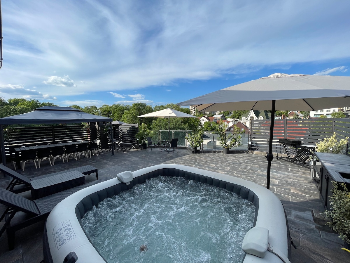 Răsfață-te într-un apartament elegant și spațios, situat la etajul 8, cu o vedere uimitoare asupra orașului și dotări premium. 💫 Jacuzzi privat – perfect pentru relaxare după o zi în oraș 🏡 1 dormitor + living luminos și confortabil 🌿 Zonă verde, liniștită – sector Centru 🛍️ Aproape de Shopping MallDova, magazine și restaurante ✨ Reparație euro, mobilat și utilat complet 💻 Wi-Fi rapid, aer condiționat, tehnică modernă Ideal pentru escapade romantice, city break-uri sau călătorii de afaceri