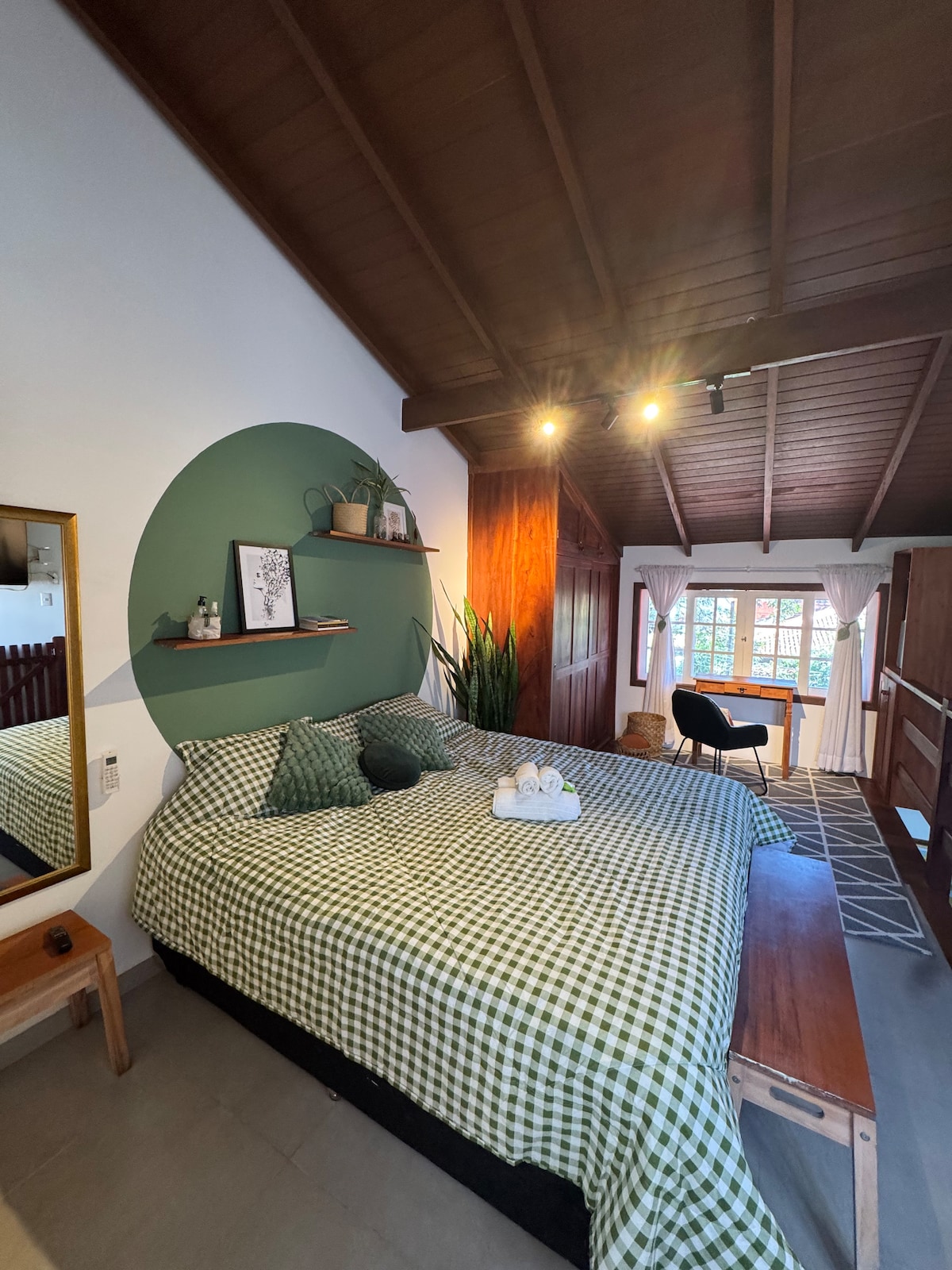 This brand new house sits high above the trees inside the Aldeia Rizoma eco village, a gated property 15 minutes away from the city historical center. The property offers a jungle gym, sauna (paid as an extra), private trails and access to 5 private waterfalls. The one bedroom studio has a king size bed built high so you can watch the forrest from it. It offers a private hot tube and a fully equipped kitchen. There is an extra bed that can be used for a third person with an extra fee per night