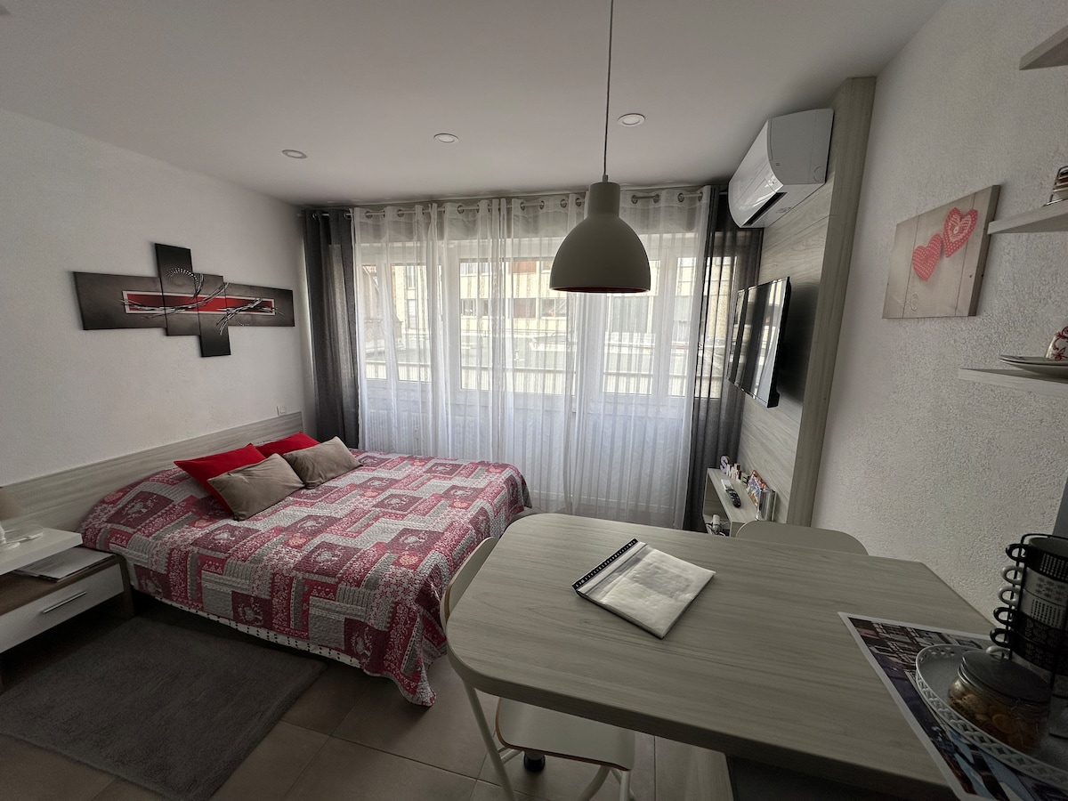 Мебльована студія в центрі міста Кольмар, для 2 осіб у теплій атмосфері! Квартира розташована на 1-му поверсі, без ліфта. Вулиця, що забезпечує доступ до квартири, знаходиться на напів пішохідній вулиці і дуже тиха. Прямий доступ до центру міста за 50 метрів. Приватної парковки немає, але до будівлі можна дістатися на автомобілі з платними паркувальними місцями поблизу. Безкоштовний паркінг у 10 хвилинах ходьби. Критий паркінг у 8 хвилинах ходьби — паркінг Lacarre 3 євро = 24 години.
