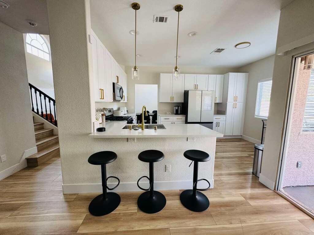 Насолоджуйтеся відпочинком на свіжому повітрі в затіненій хижині або на гамаку, збираючись біля вогнища або відпочиваючи в нещодавно відремонтованому помешканні! Насолоджуйтеся гідромасажною ванною з підігрівом і просторим басейном з підігрівом Час їзди - лише 2 хвилини до аеропорту, 8 хвилин до Стріп, 12 хвилин до стадіону Allegiant Stadium і 14 хвилин до конференц-центру. Помешкання вміщує 8 зручних місць з 3 двоспальними ліжками Queen Size і 1 ліжком King Size! Чудова кухня, вітальня, пральня, басейн та простір на відкритому повітрі! Надзвичайно швидкий Інтернет 1000 Мбіт/с. Можна з домашніми тваринами. Куріння ЛИШЕ на відкритому повітрі