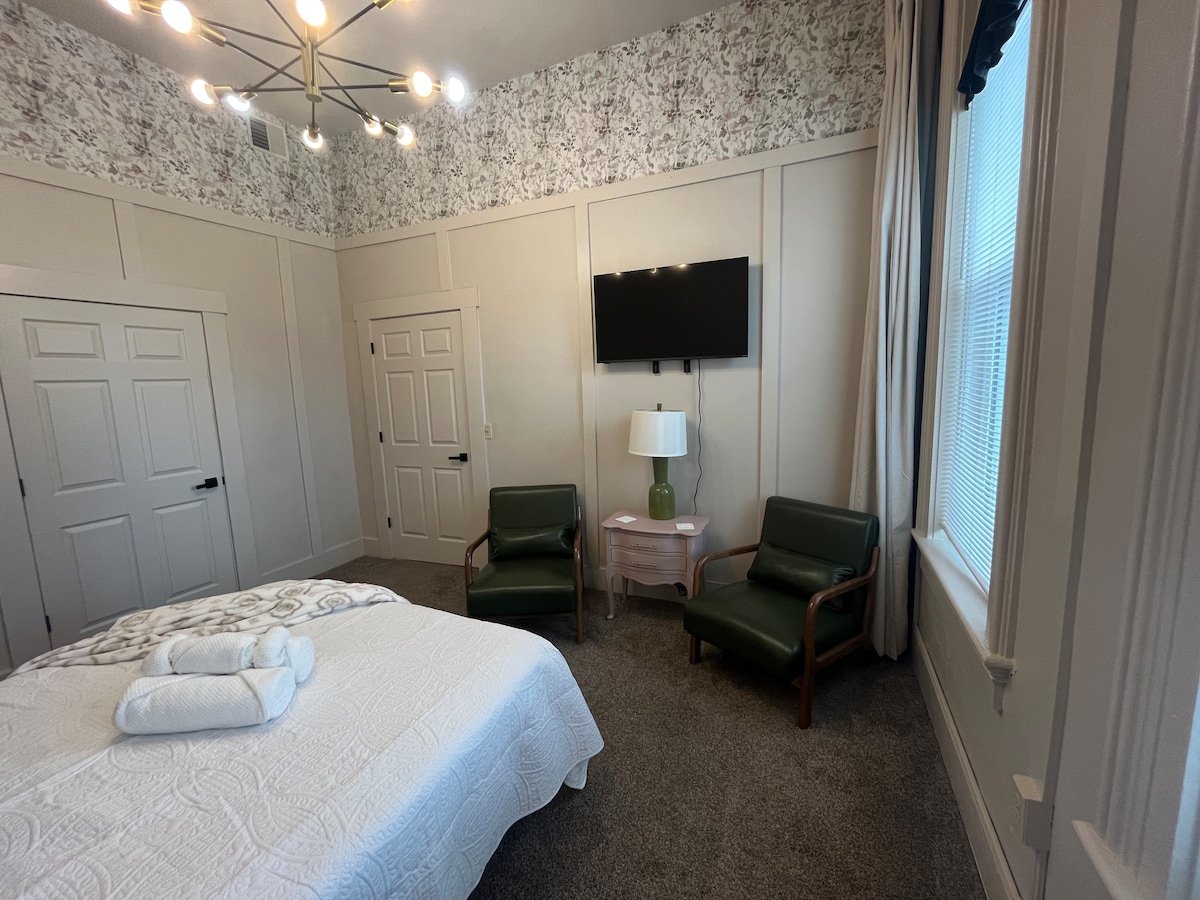 Квартира-студія розташована прямо на площі в центрі Роквілла! Незалежно від того, чи ви тут на фестивалі Covered Bridge, відвідуєте родину, чи просто проїжджаєте, ви відчуєте себе як вдома, залишаючись у центрі міста. Повністю обладнана кухня, ванна кімната та пральня. Прокиньтеся з видом на будинок, розташований всього в декількох кроках від кав’ярні, магазинів та в одному кварталі від бару Thirty-Six Saloon. Ця локація знаходиться в декількох хвилинах ходьби від більшості визначних місць Роквілла. Другий поверх, потрібно підніматися сходами